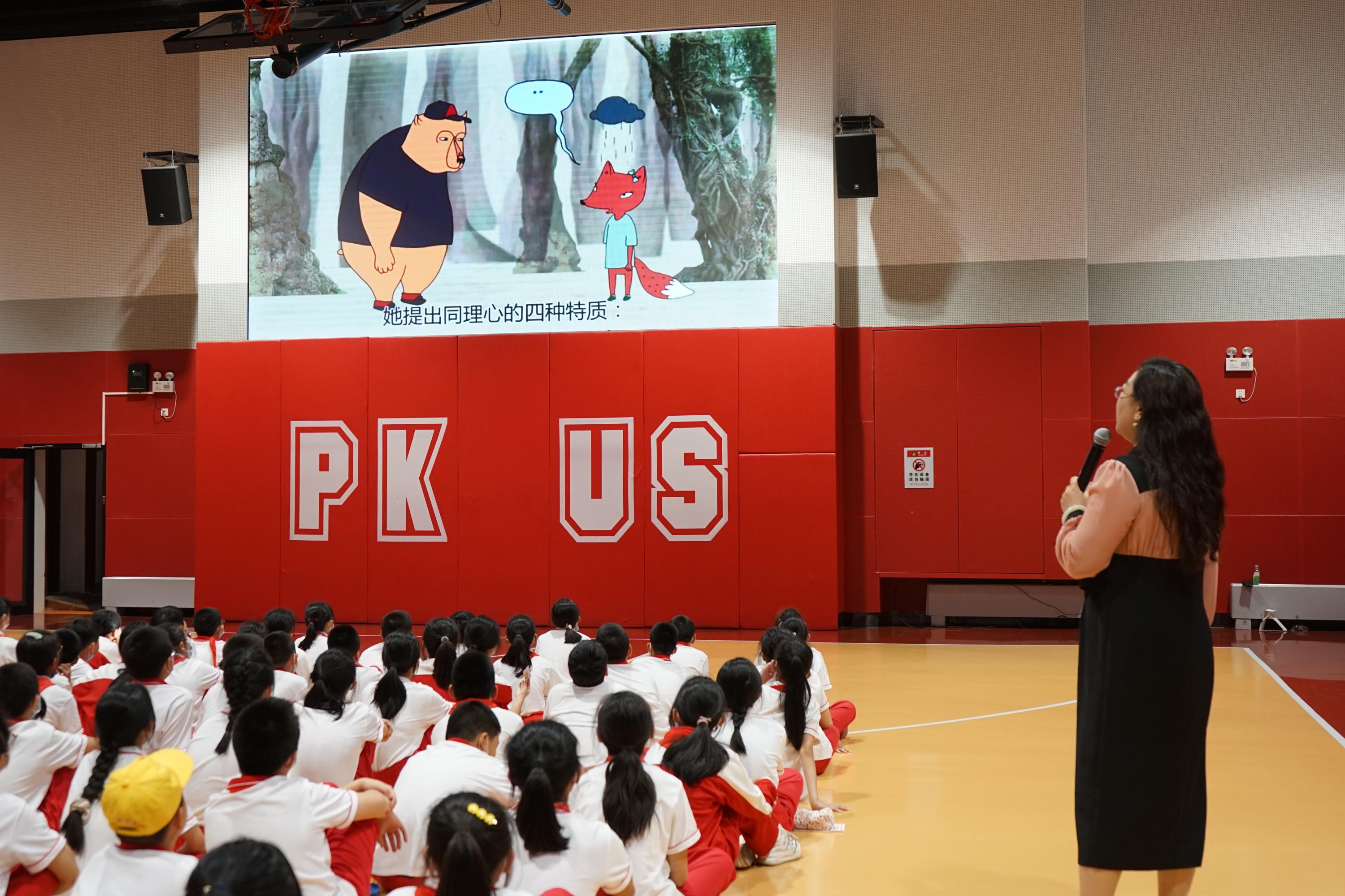 刘卉教授从我的校园、开学转变、自我调整、积极应对、心灵寄语五个方面引导小红们调整小学到中学阶段转变的心理状态,更好适应新阶段的学习进度。演讲中,刘卉教授语言幽默,举例丰富,贴近生活。小红们阵阵欢笑、掌声雷动。