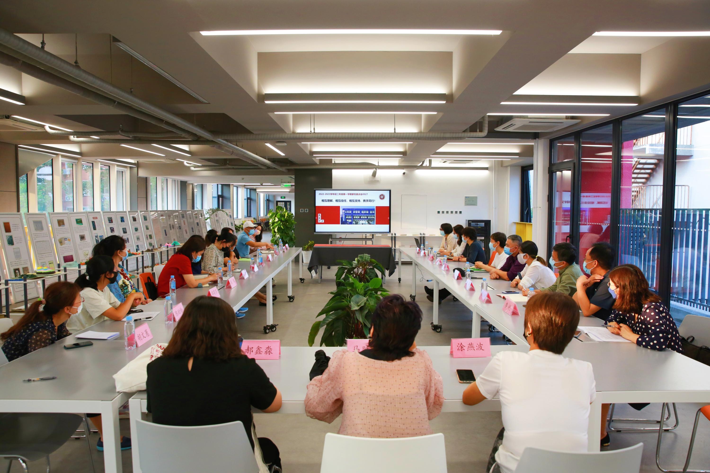 2022年9月27日,北大附中初二年级家委会代表座谈会顺利召开。初二年级19位家委会代表,北大附中党委副书记、初中部主管领导崔岩老师,初二年级长张霞、武福燕老师,体育备课组组长兰长春老师,物理备课组组长周立松老师参加会议。