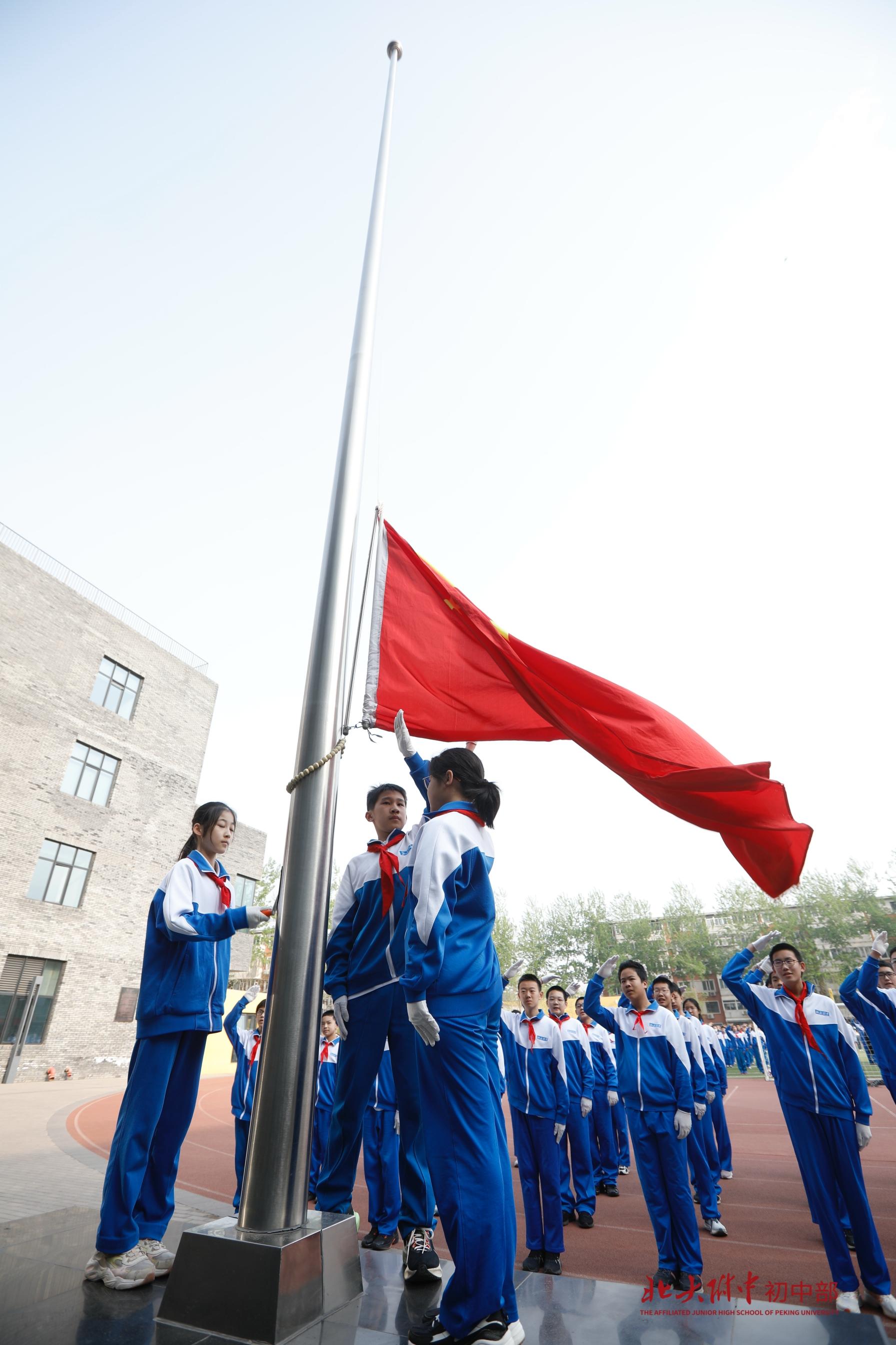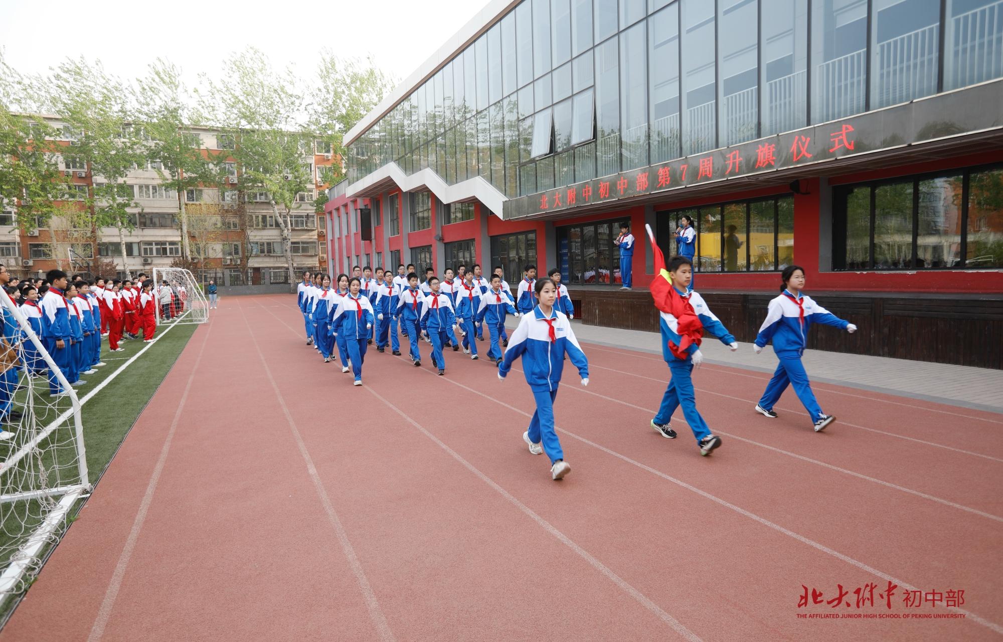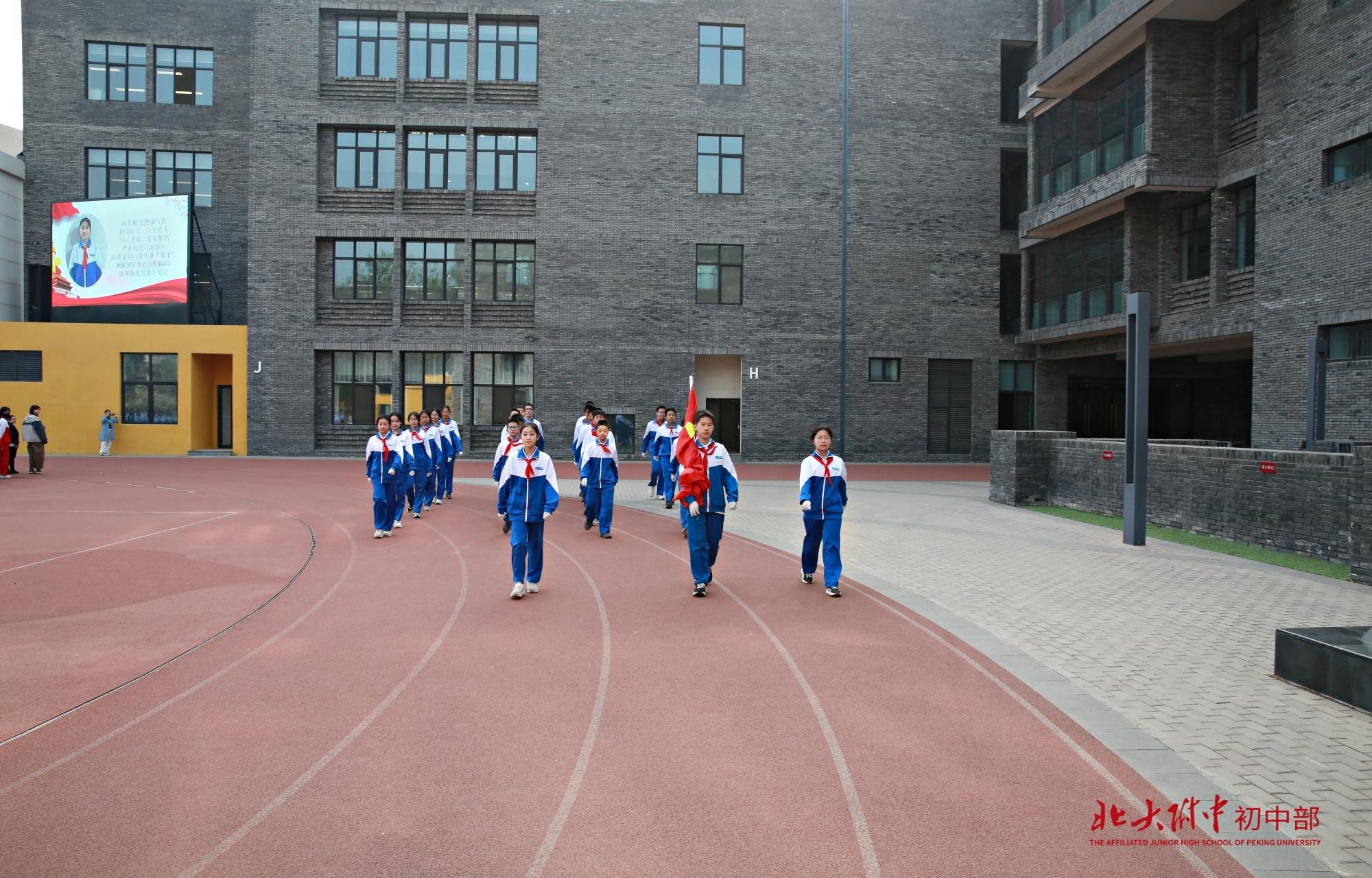 担任本周升旗仪式的旗手是马英涵同学,海淀区优秀学生干部,北大附中校级三好学生,在班级中担任班长职务。他乐观开朗,勤学善思,积极策划组织班级各项活动,他热爱运动,擅长足球、网球、羽毛球,自学编程,获USACO银奖。