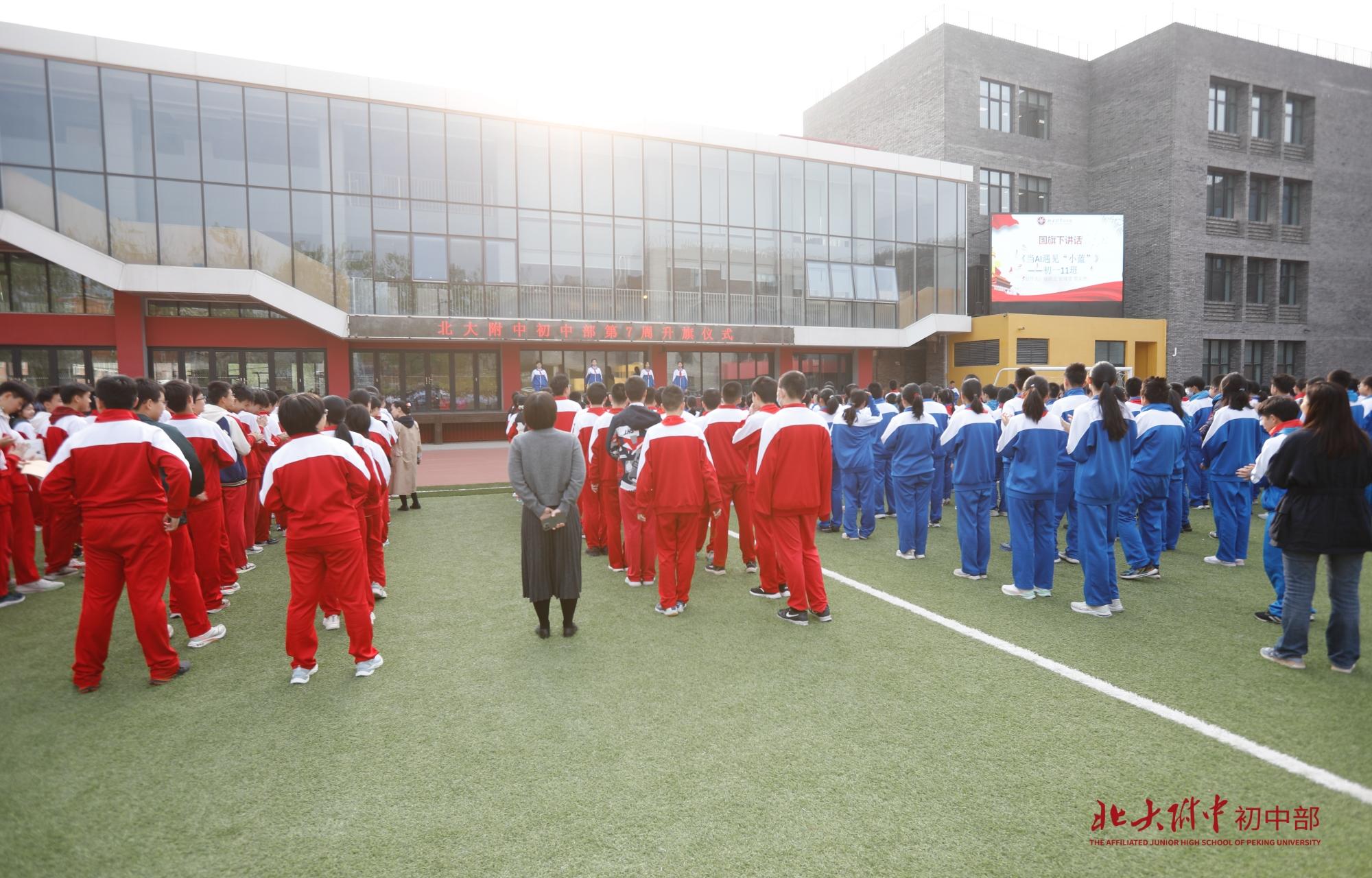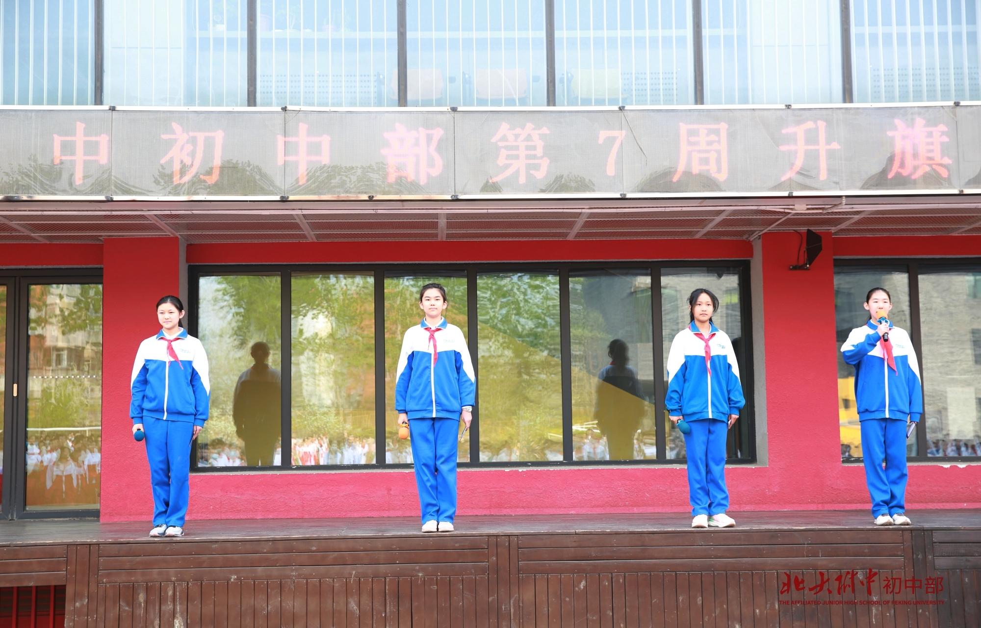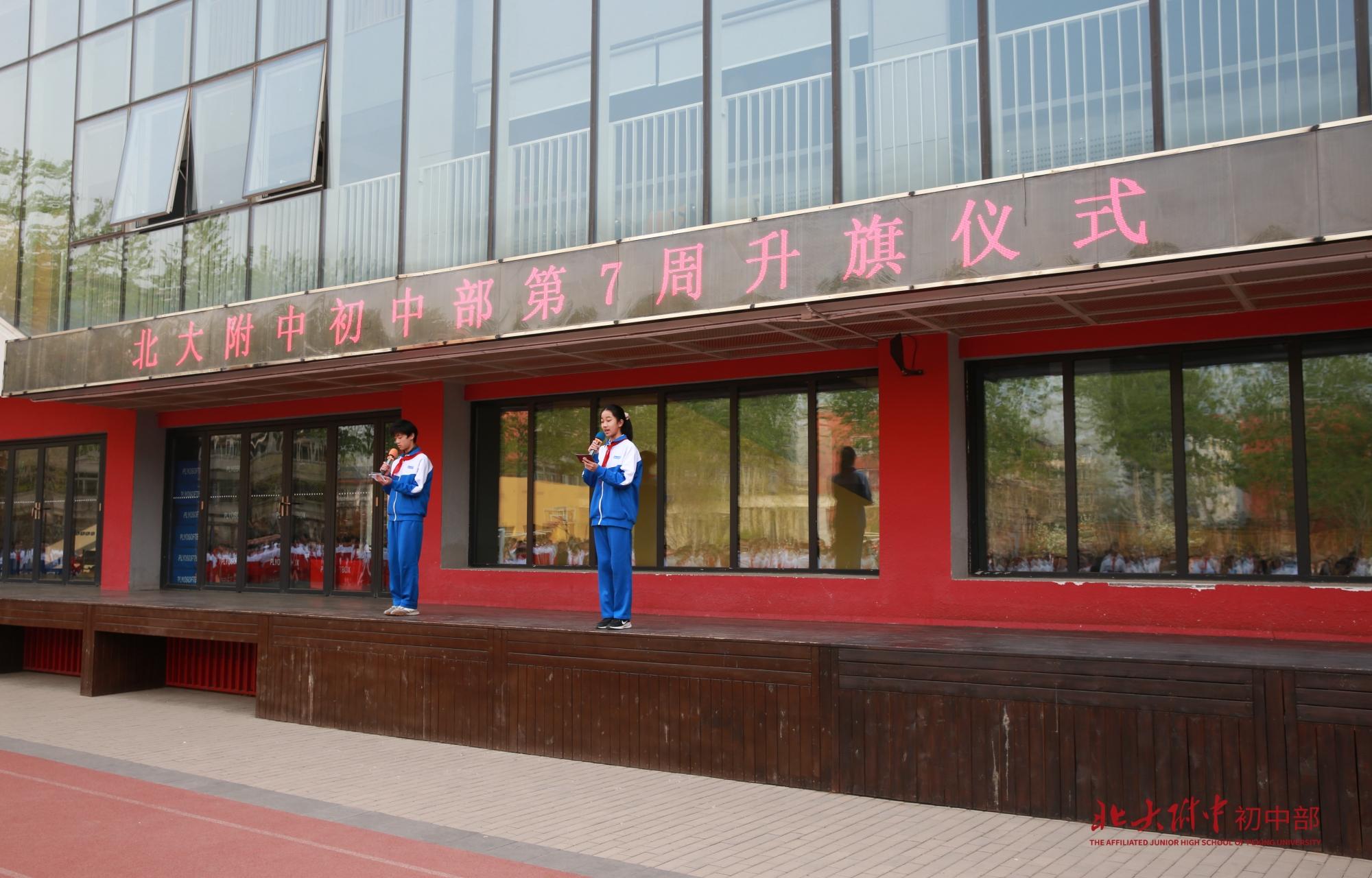 担任本周升旗仪式的旗手是马英涵同学,海淀区优秀学生干部,北大附中校级三好学生,在班级中担任班长职务。他乐观开朗,勤学善思,积极策划组织班级各项活动,他热爱运动,擅长足球、网球、羽毛球,自学编程,获USACO银奖。