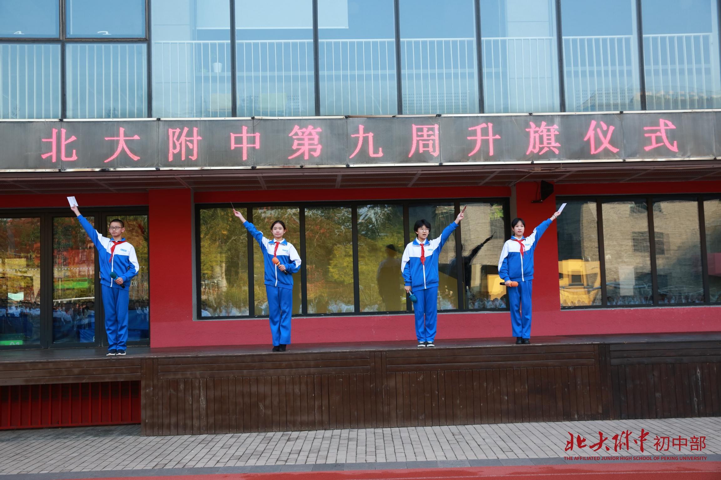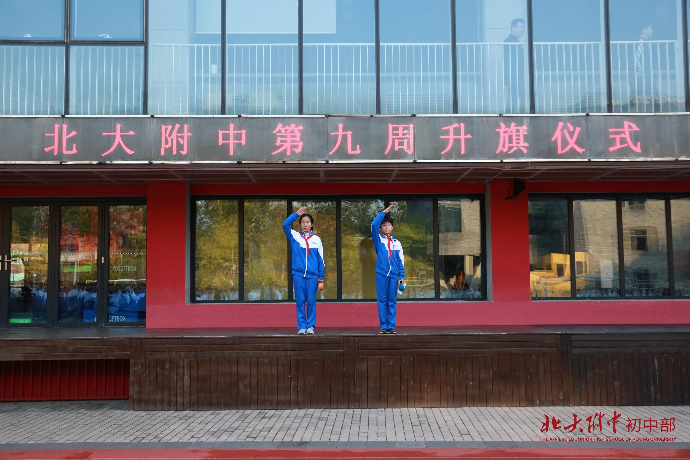 担任护旗手的是王品卓同学,他是校学生会宣传部成员,自然之翼天文组成员,曾获北京市中小学生天文知识竞赛三等奖、二等奖。他热忱阳光,乐观向上,眼中有光,心中有梦。