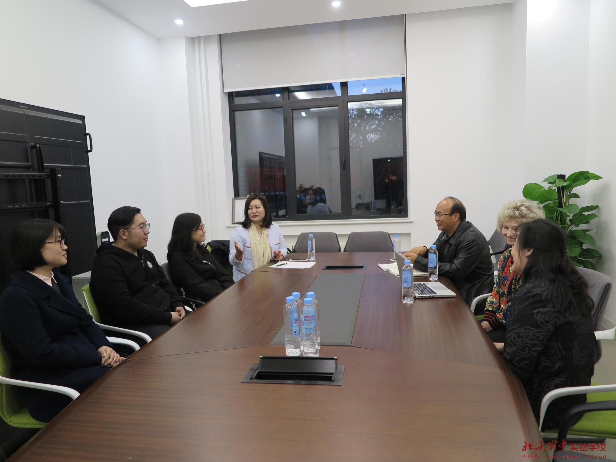 Marlene教授一行在培训前一日专程来我校参观校园,与教师代表亲切座谈,并现场体验我校传统文化课程。