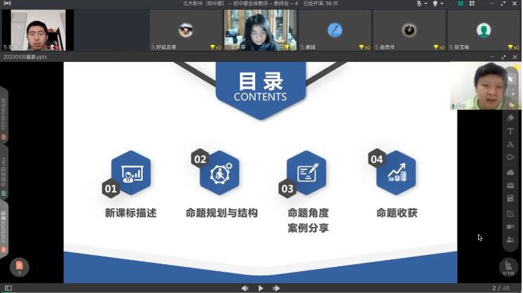1月9日至13日,北大附中初中部全体教师在线上举办了为期5天的教研活动,11位一线教师,聚焦“新课标”,为教师成长“提质增效”,每场分享会后,各备课组开展交流研讨。本次线上教研活动,教师们列举丰富案例,详细解读新课标下的教学策略和实施路径,以小见大,深度教研。11位授课教师倾囊分享,讲授内容干货满满!
