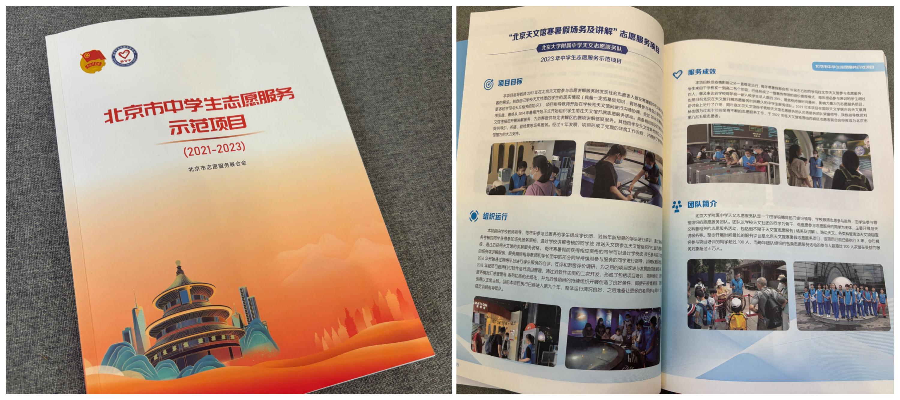 北大附中天文馆志愿场务与讲解服务工作收录入《北京市中学生志愿服务示范项目(2021-2023)》