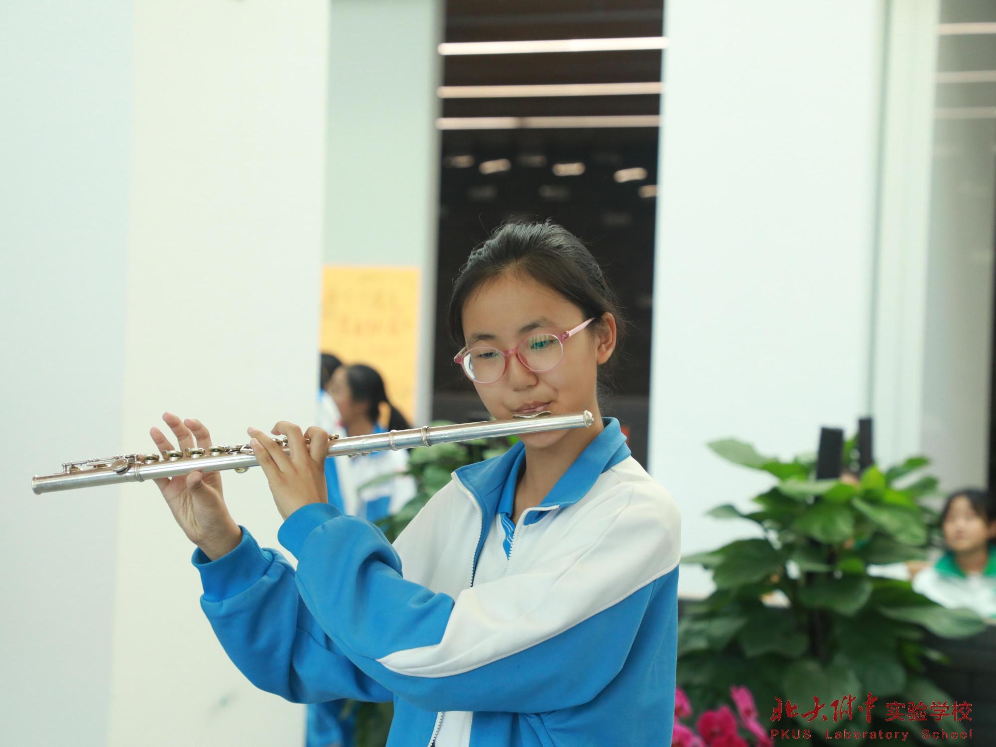 “快闪祝福祖国”活动在翟宇轩同学悠扬的长笛声中开启,任思儒同学挥动着鲜艳的五星红旗,老师和同学们满怀激情,集体合唱《我和我的祖国》,嘹亮而深情的歌声将本次活动推向了高潮。