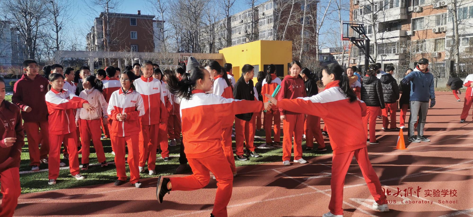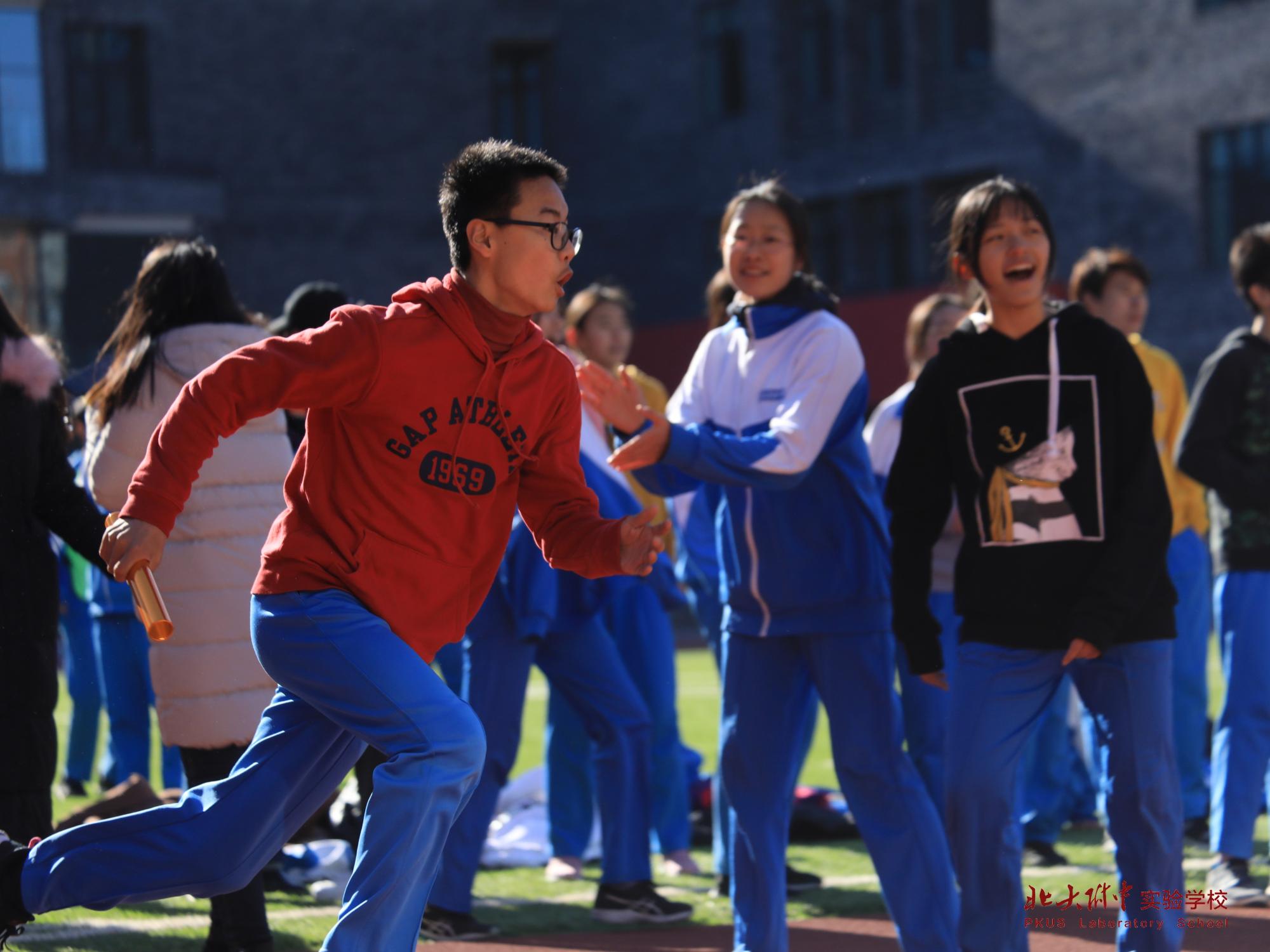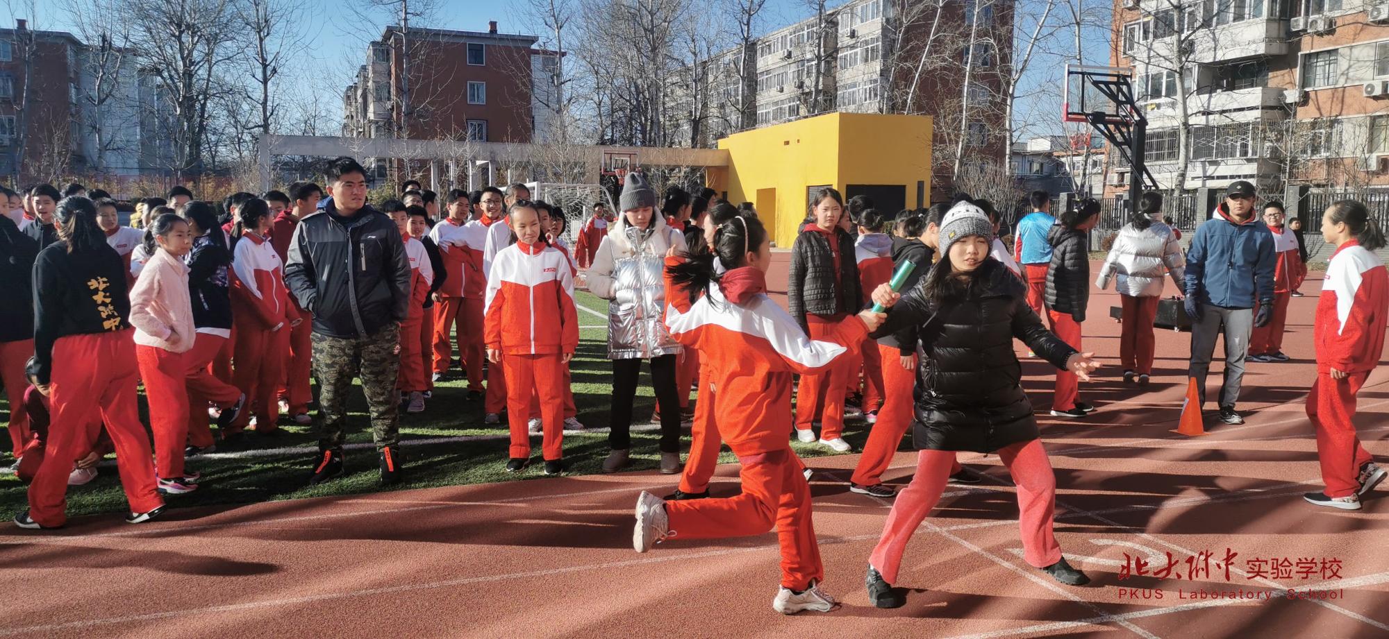 2019年12月11日—13日,北大附中实验学校火炬接力赛在学校操场分年级相继举行。虽然天气寒冷,但各班运动员们斗志昂扬、精神抖擞,比赛的热情丝毫没有受到天气的影响。同学们矫健的步伐、漂亮的传接棒和持之以恒、永争第一的拼搏精神形成了一道亮丽的风景线。未参赛的同学们在旁边为运动员们呐喊助威,热烈的加油声响彻操场的上空。