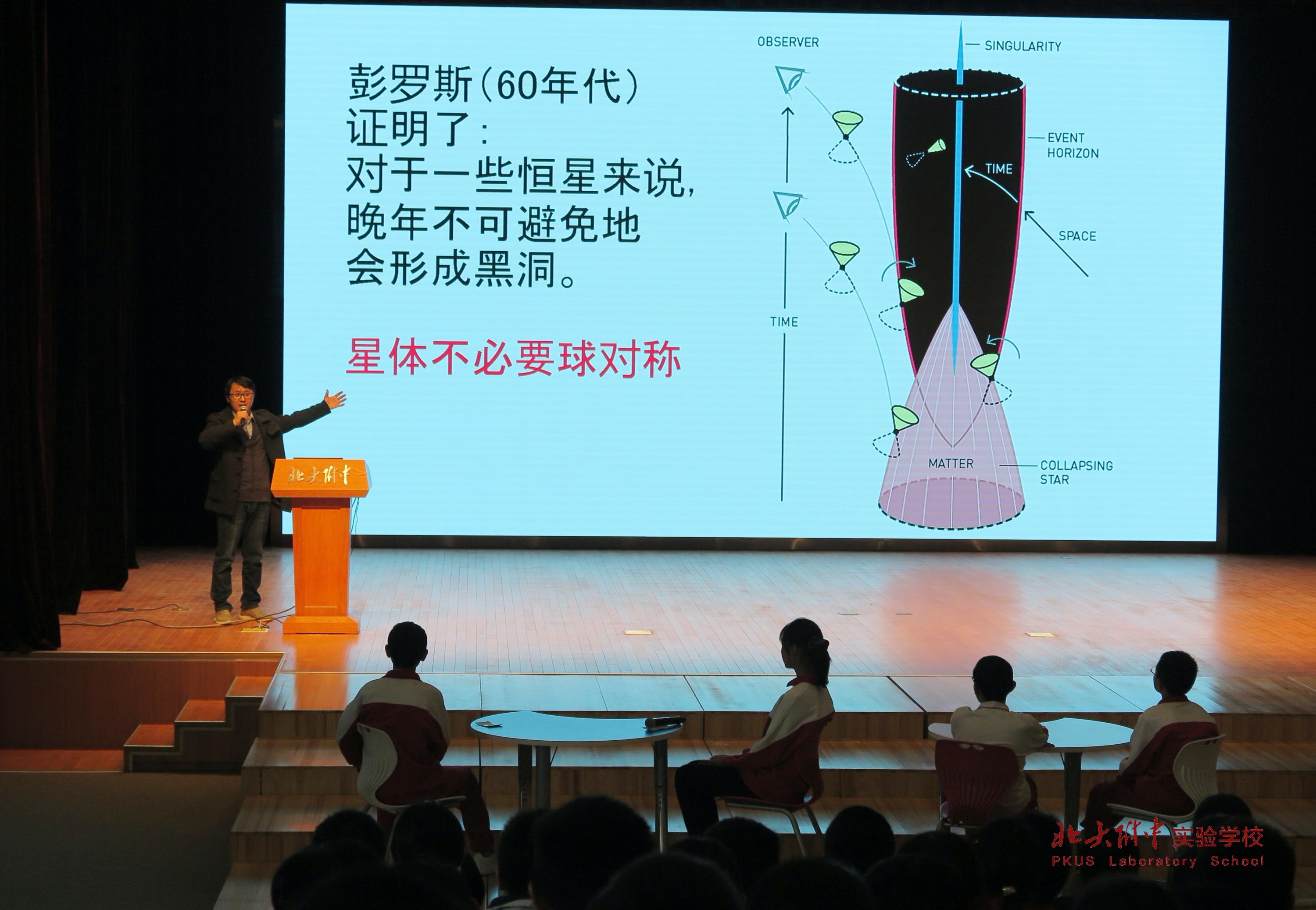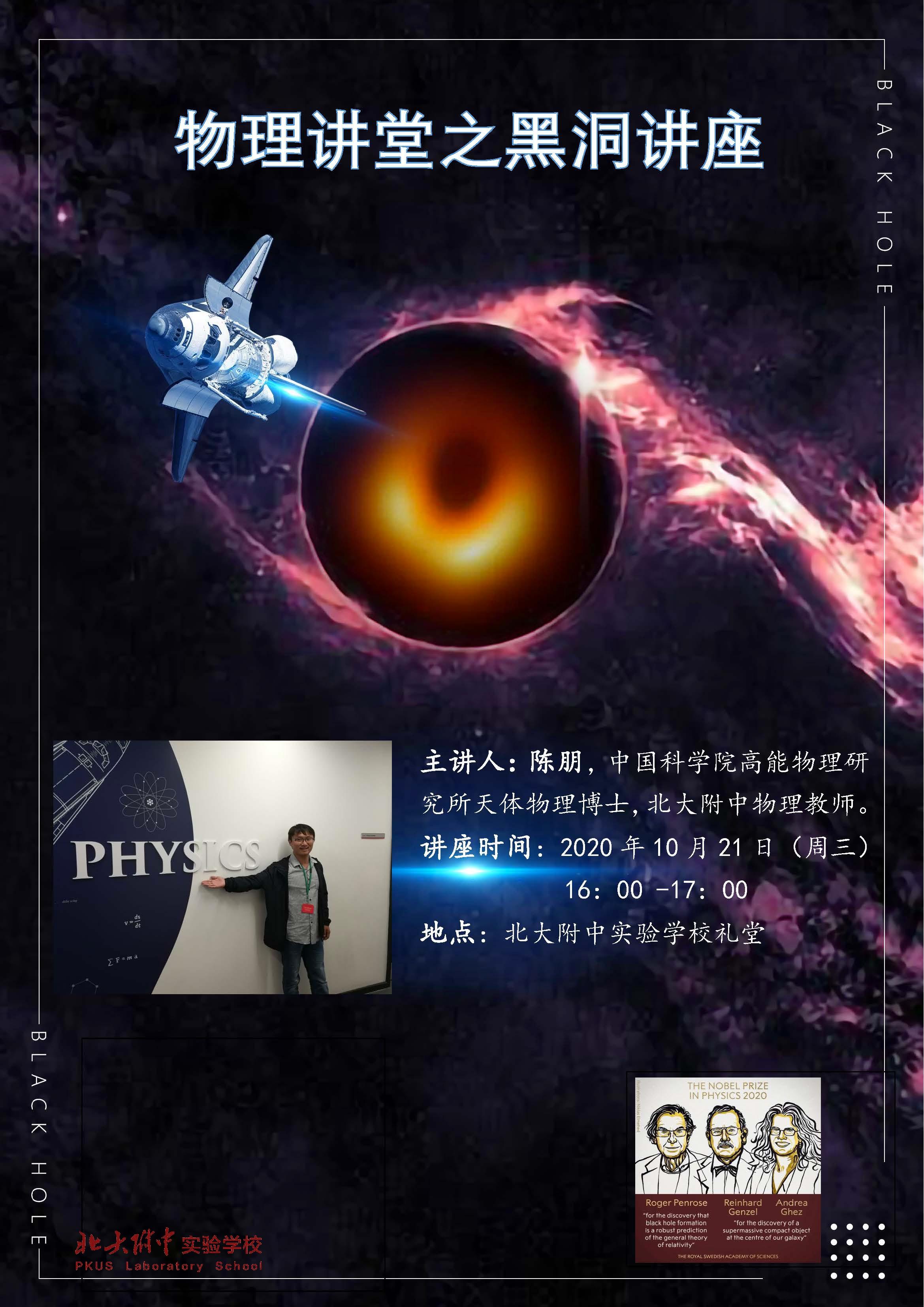 2020年10月6日,诺贝尔物理学奖花落“黑洞的研究”。黑洞是宇宙中最“黑暗”的天体,为什么被物理学家视为“世间至美”?初二物理组教师抓住诺奖契机,特邀中国科学院理论物理博士、北大附中高中部元培学院陈朋老师走进物理讲堂,和同学们一起聊一聊“黑洞”。秋日校园,掀起探究黑洞的热潮。这不仅是中学生关注前沿科技的起点,更是中学生树立成为基础学科尖端人才远大理想的起点。