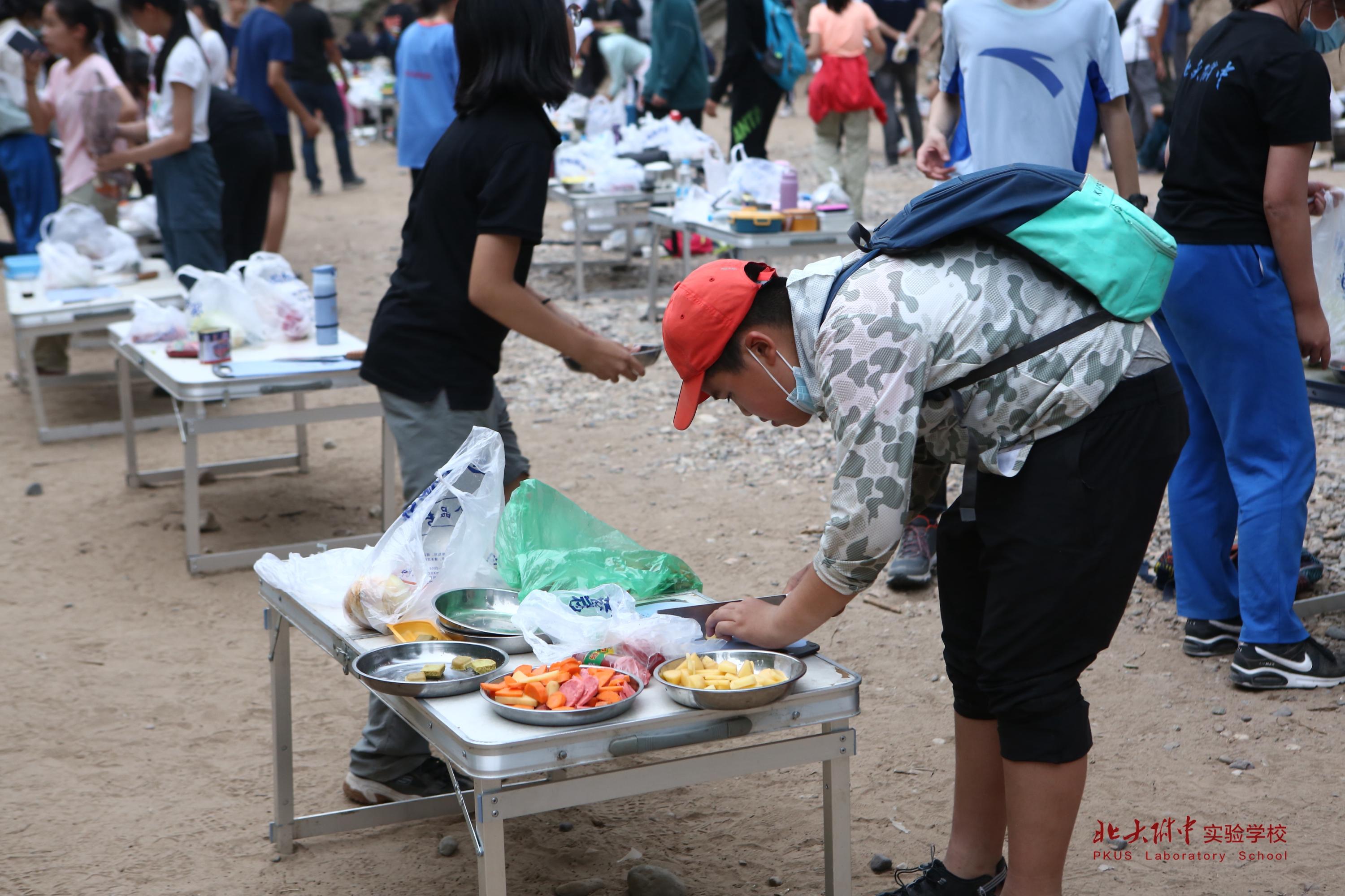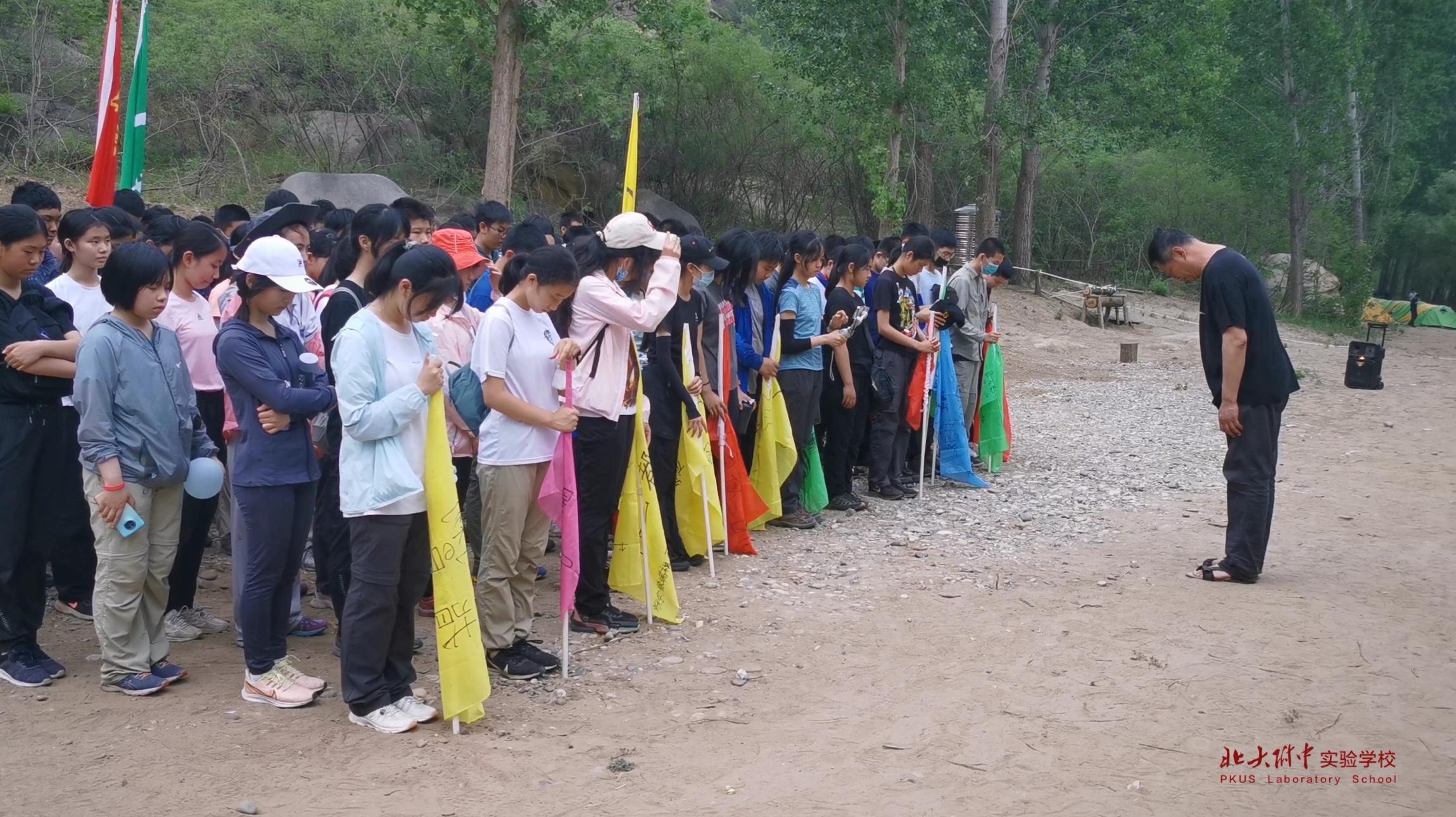 自然太过美好,让我们差点忘记此行的目的是野外考察。卸下行囊,我们马不停蹄地制作了小组旗帜,一系列的团建活动让同学之间变得更默契也更团结,欢乐的氛围持续到傍晚,直到我们为逝世的袁隆平爷爷全体默哀。我们决定减少米的用量,做多少吃多少,不浪费一粒粮食。