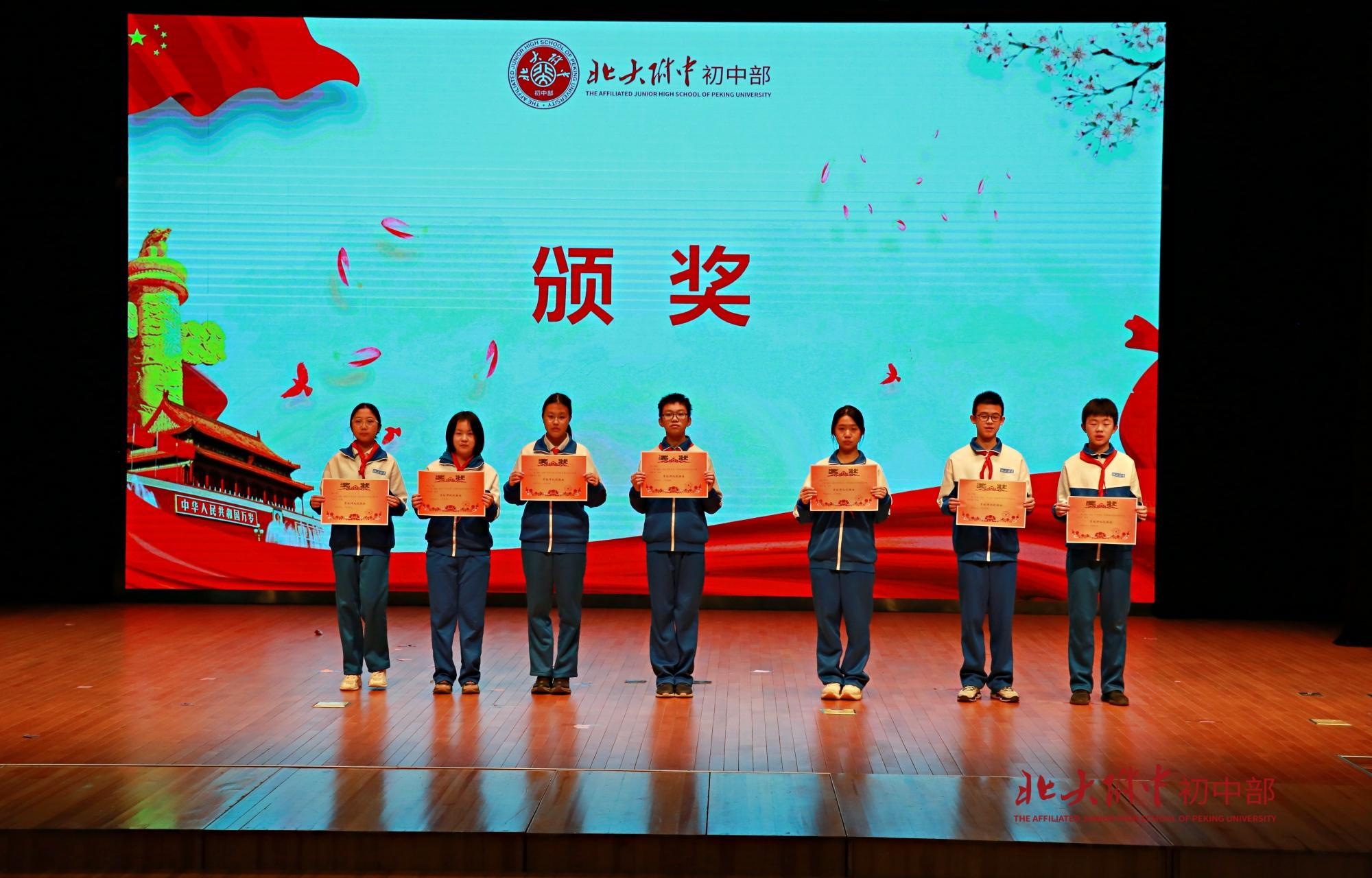 护旗手邓子琪同学,是本班的学习委员兼物理课代表,她成绩优异,曾被评为区级三好学生,优秀学生干部。并获得青少年编程 Python五级,天文观测一等奖,天文知识竞赛二等奖。
