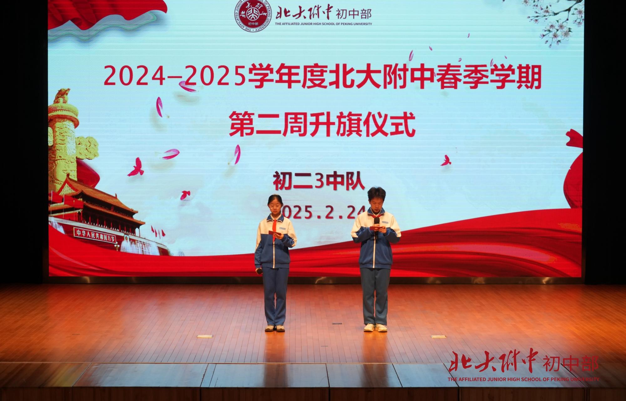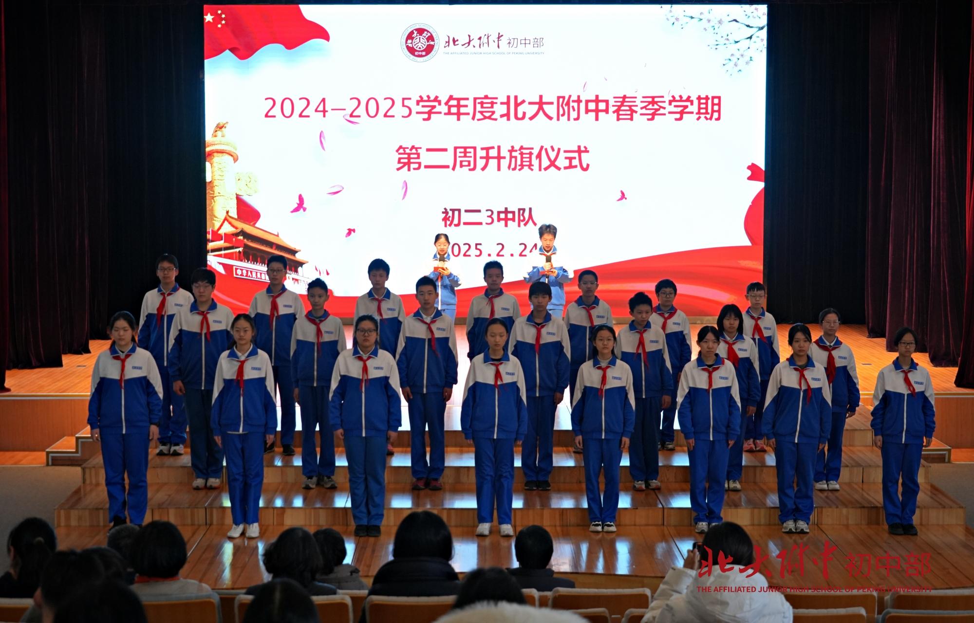 2025年2月24日上午8时,2024-2025学年度春季学期第2周升旗仪式在畅春园校区礼堂举行。