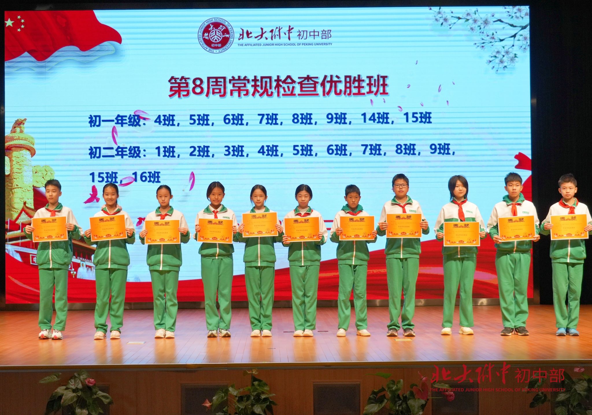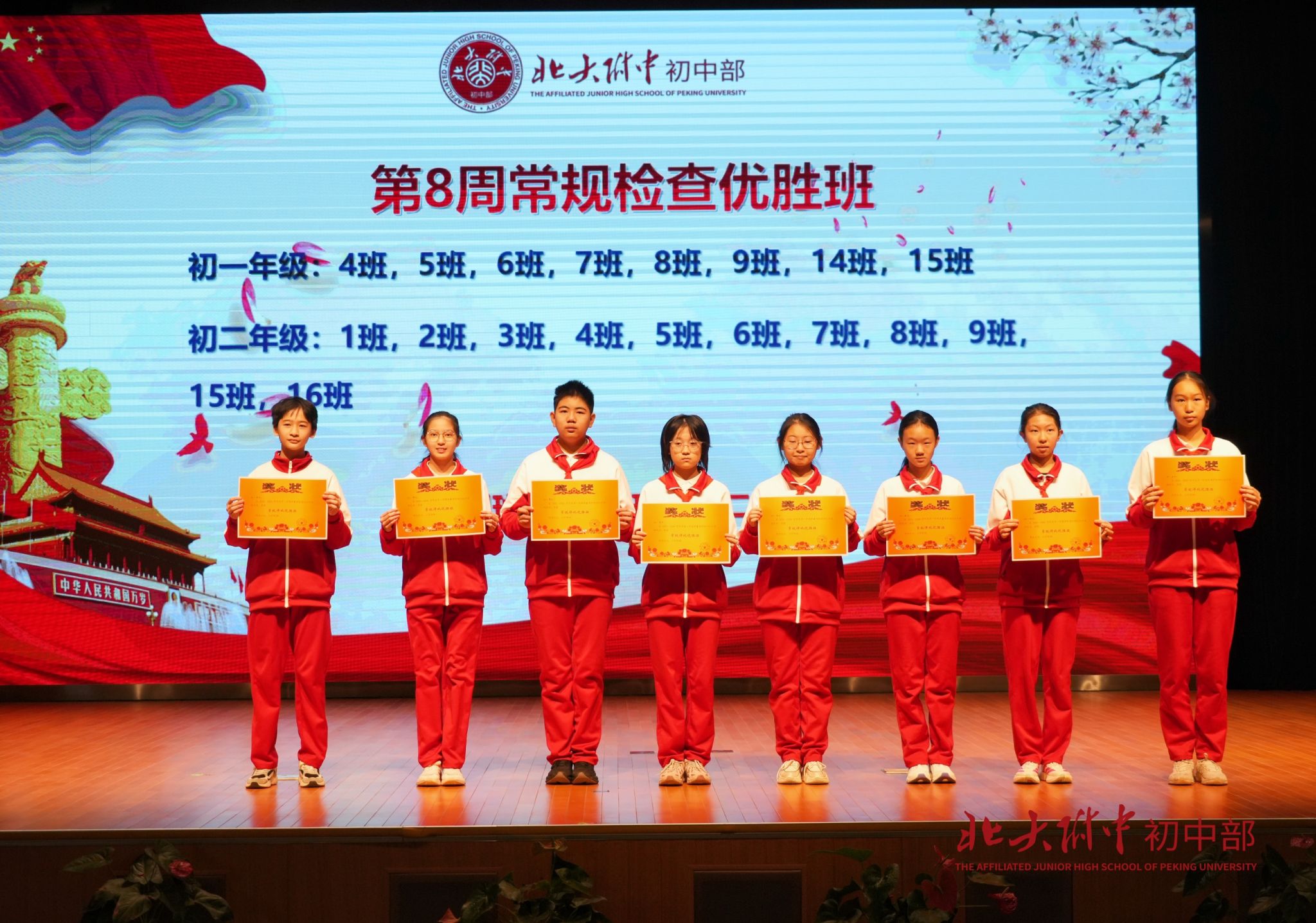 担任本周升旗仪式的班级是初二16班。初二16中队是一个以“团结为帆、拼搏为桨”的集体。他们用智慧书写青春,以汗水浇灌梦想,在赛事课、科技节、合唱节等多项活动中表现优异,屡创佳绩。曾荣获畅春竞技比赛足球亚军、排球冠军,多次获评校级“综合优胜先进班集体”、班级文化建设“综合优胜奖”、乐在畅春“一等奖”以及“常规评比优胜班”等荣誉,展现出昂扬奋进的团队风貌。