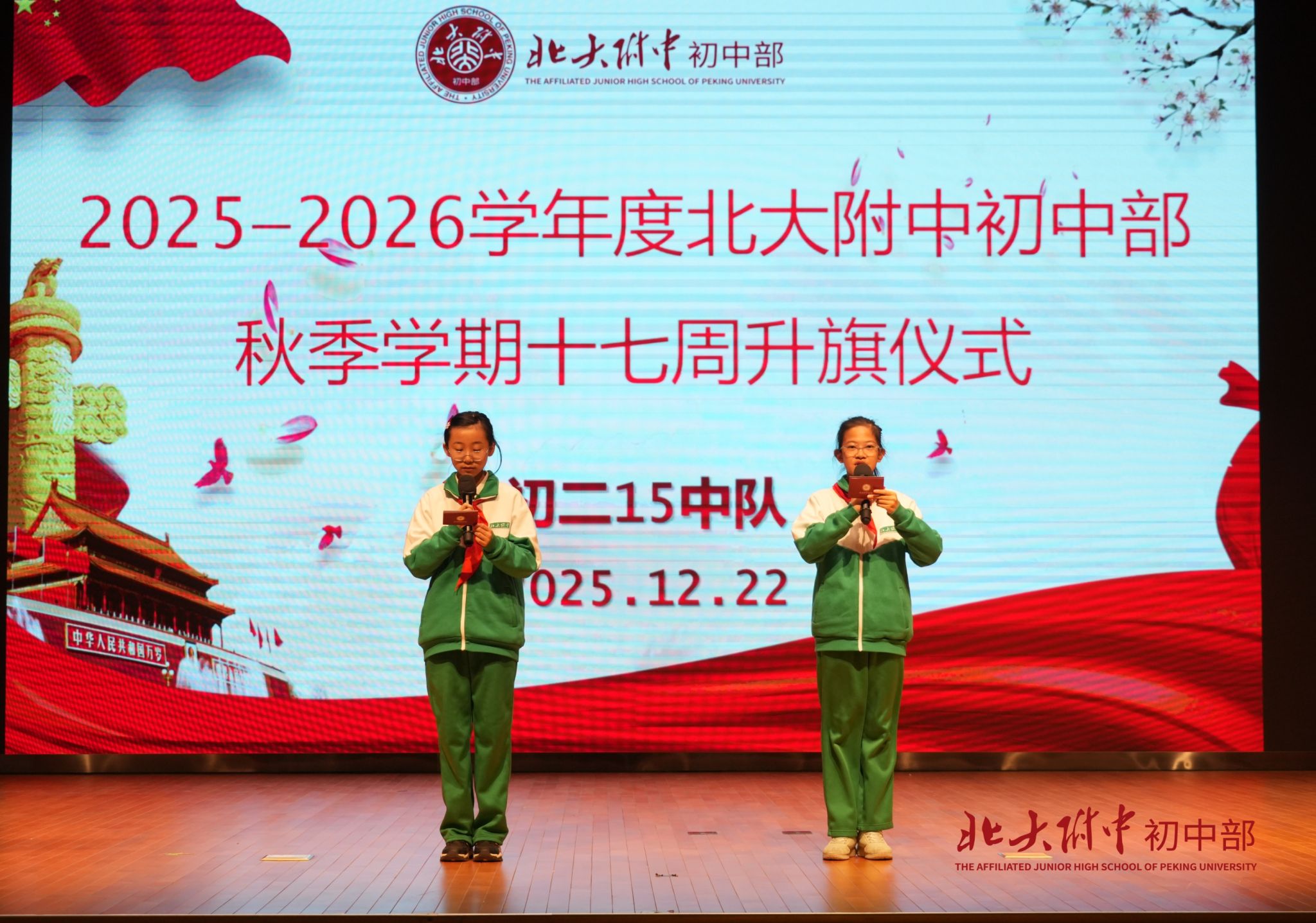 2025年12月22日上午8时,2025-2026学年度秋季学期第17周升旗仪式在畅春园校区礼堂举行。