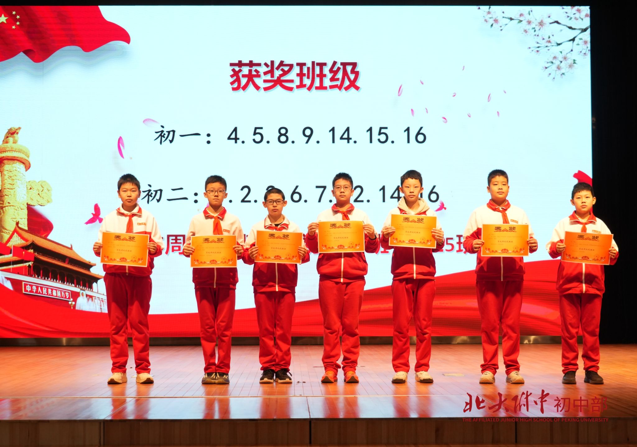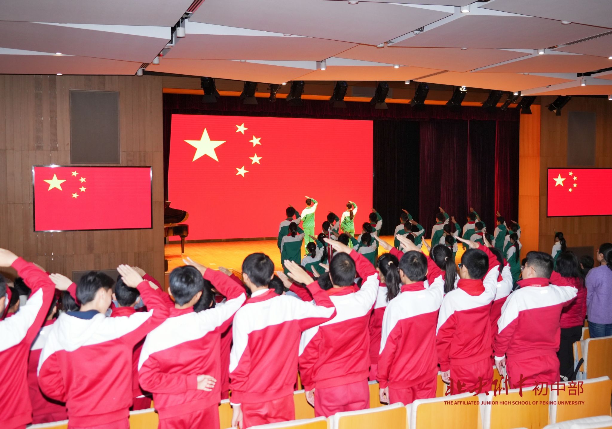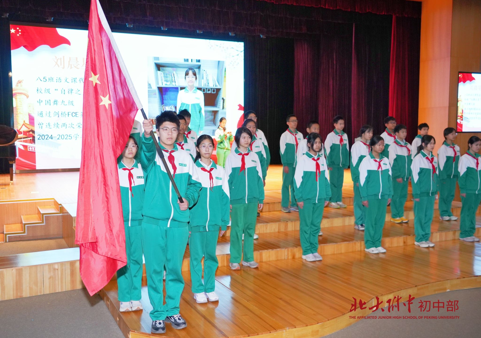 担任本次升旗手的是付智文同学,他在班级中担任生物课代表,是校羽毛球社团队长,曾荣获第15届北京市体育大会空手道组铜牌