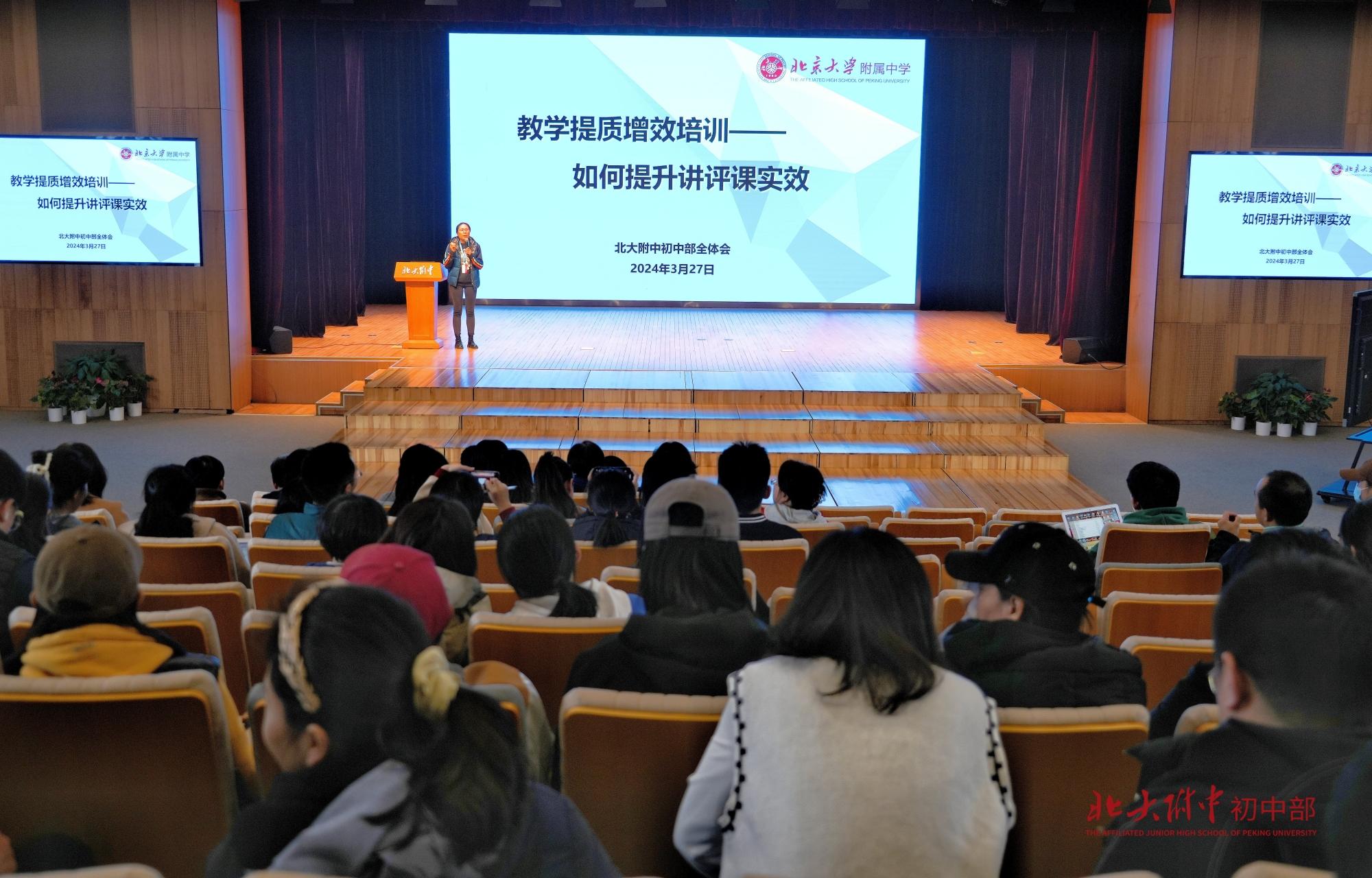 2024年3月27日下午,初中部围绕“如何提升讲评课实效”开展了面向全体教师的教学提质增效培训。本次培训聚焦学业发展目标、关注教学实践,特别邀请了初中部正高级教师、物理特级教师何艳阳老师与预科部青年骨干教师、语文课程首席吴欣桐老师进行了主题发言。