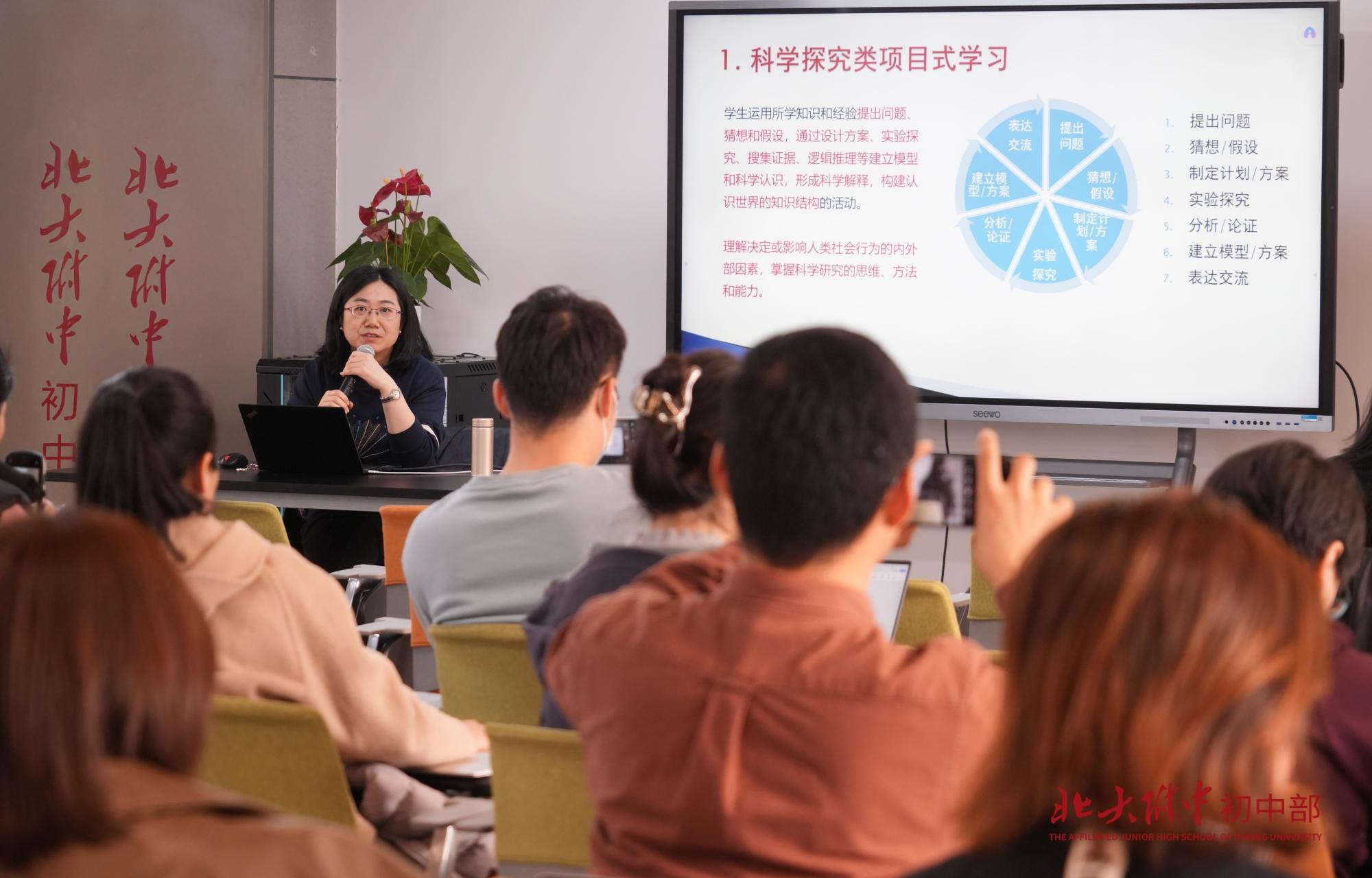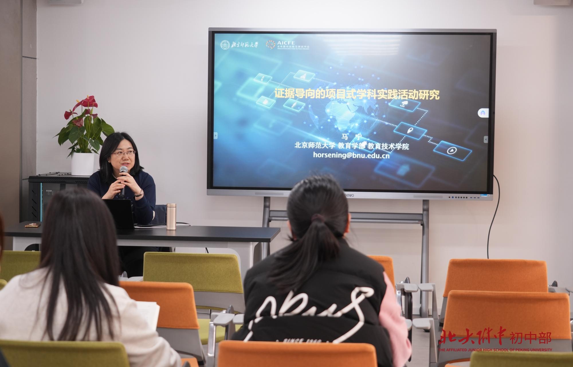 青年教师是学校发展的有生力量。为了激励青年教师在教育教学中积极探索,4月10日下午,北大附中初中部邀请北京师范大学教育学部马宁教授为青年教师开展了题为《证据导向的项目式学科实践活动研究》的专题讲座。