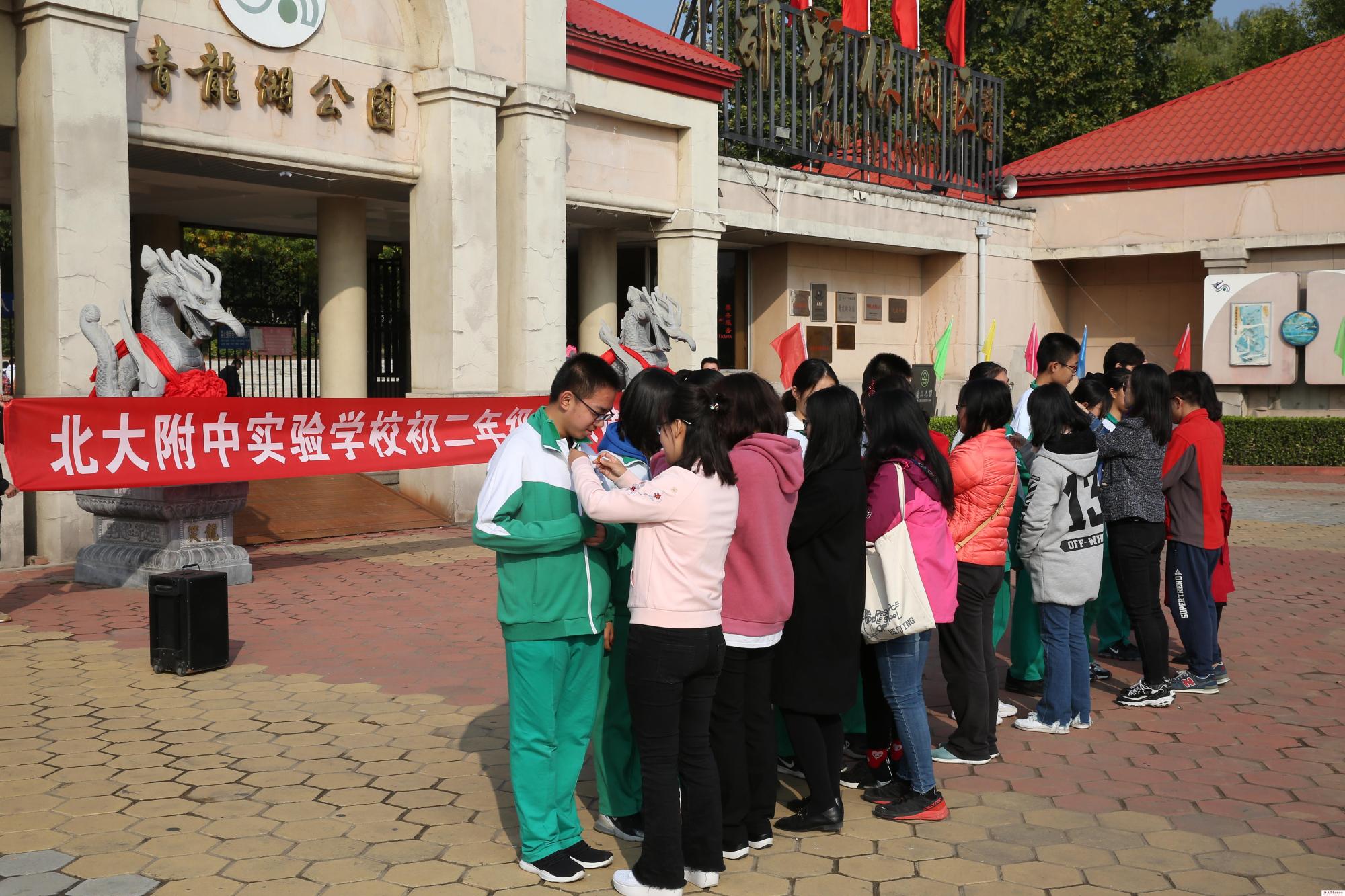 2019年10月18日,“告别红领巾,走进共青团”——北大附中实验学校初二年级离队建团仪式在青龙湖公园举行,初二年级全体师生400余人参与活动。