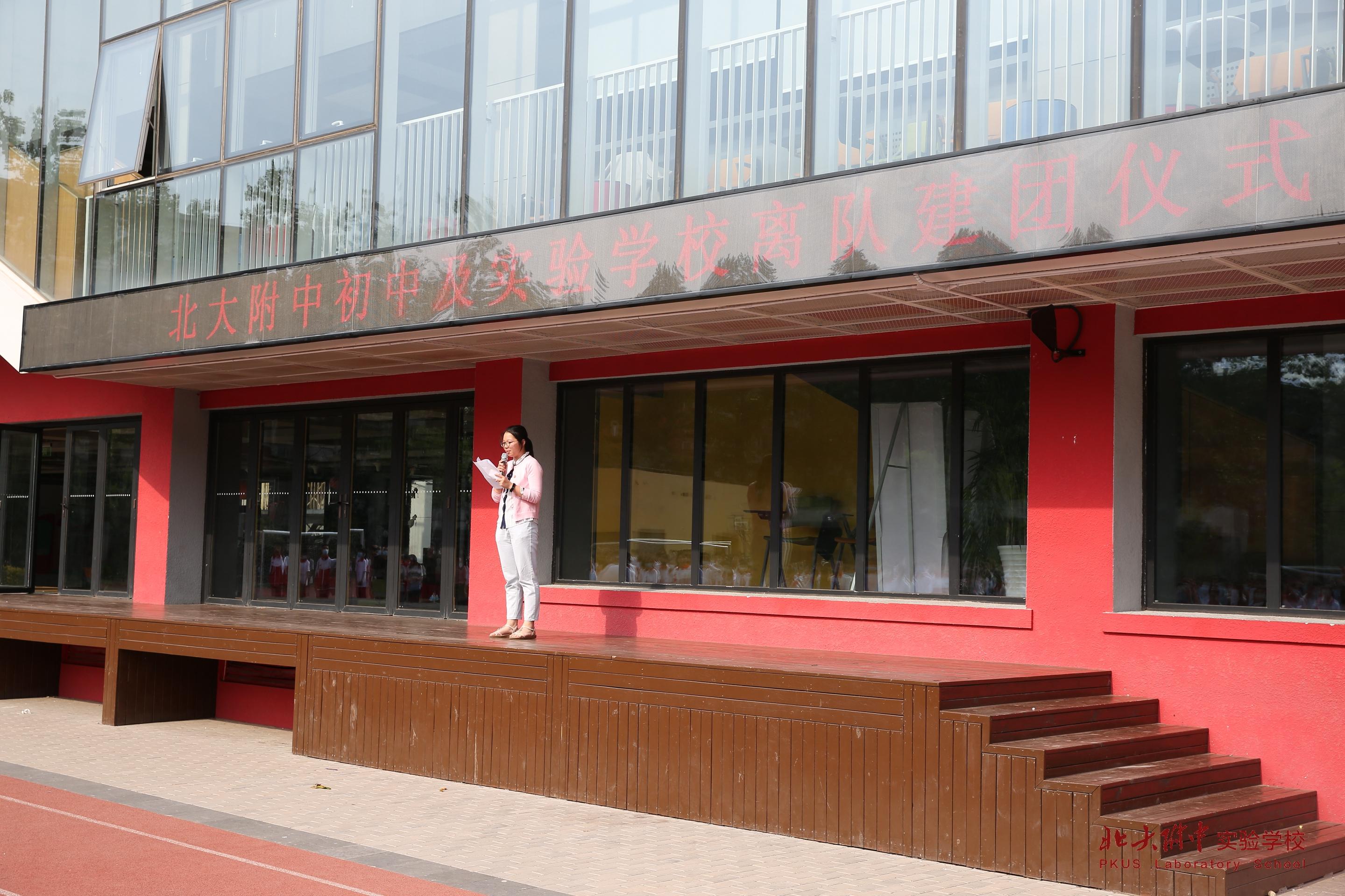 仪式的最后,李墨老师代表全体老师向同学们发表了离队建团寄语。期望同学们虽然退队后胸前不再有红领巾,但是我们的心中要永远有红领巾。加入共青团的同学们应当以共青团员的标准严格要求自己,争取更大进步,时刻都要有为共产主义事业而奋斗的决心与意志。