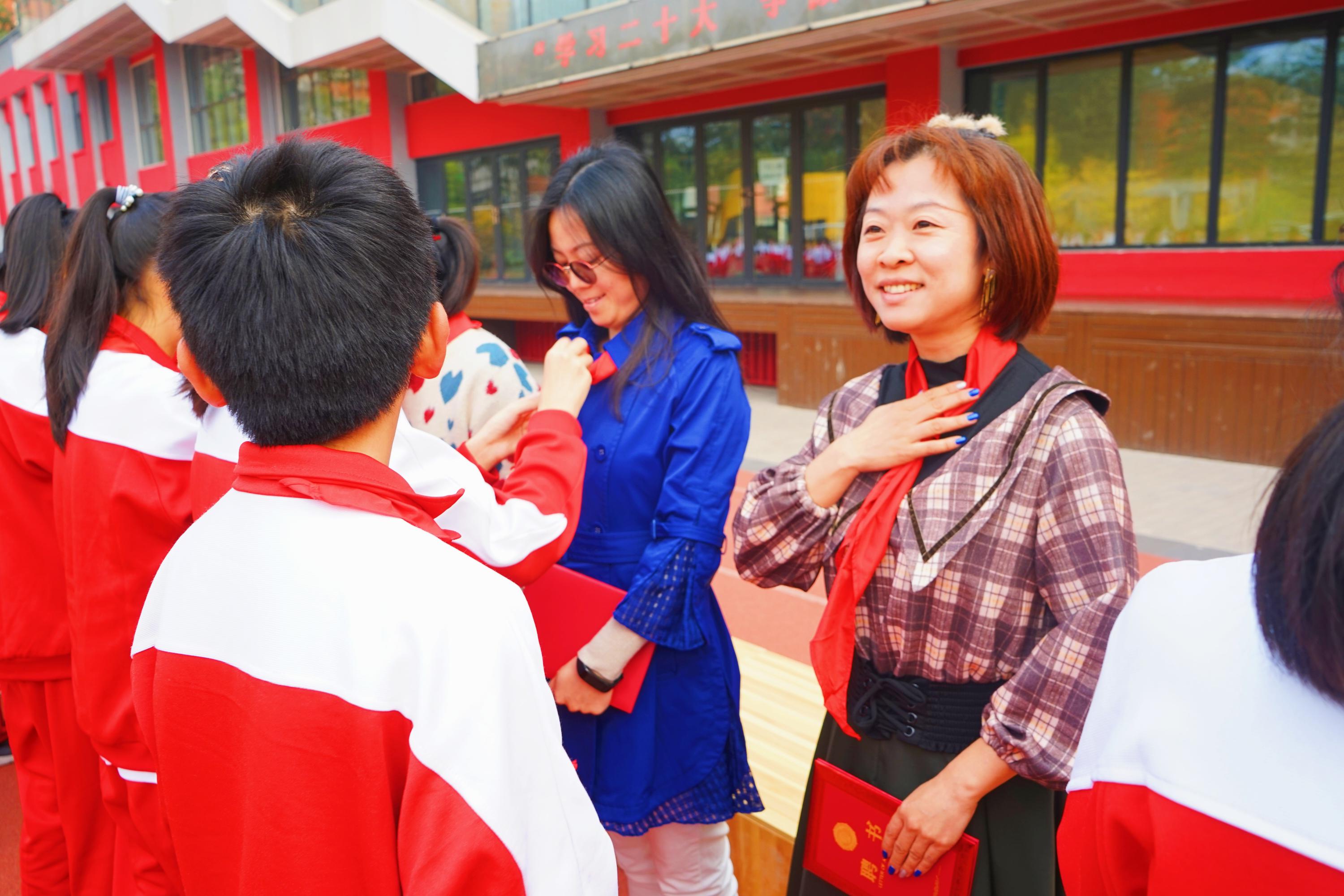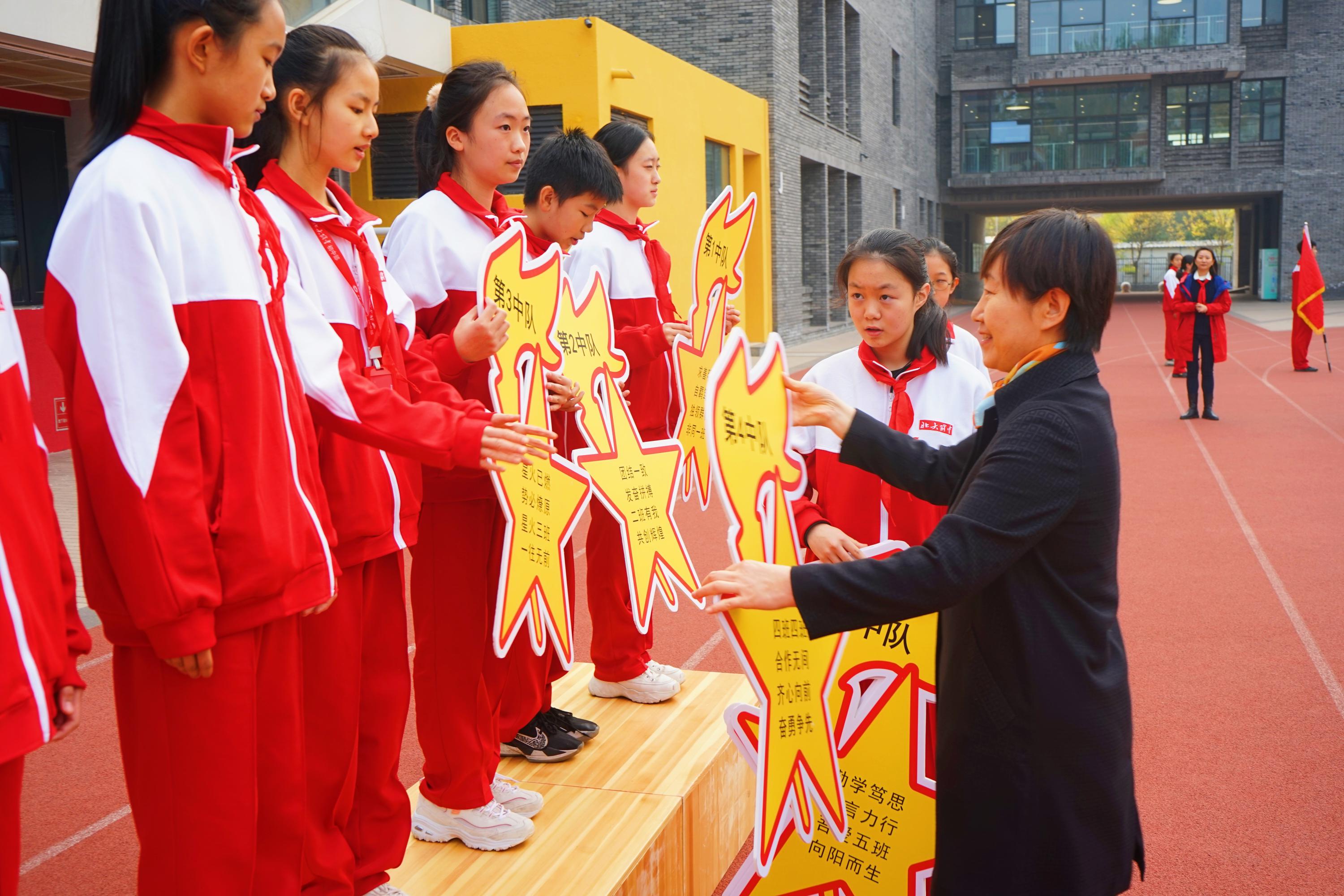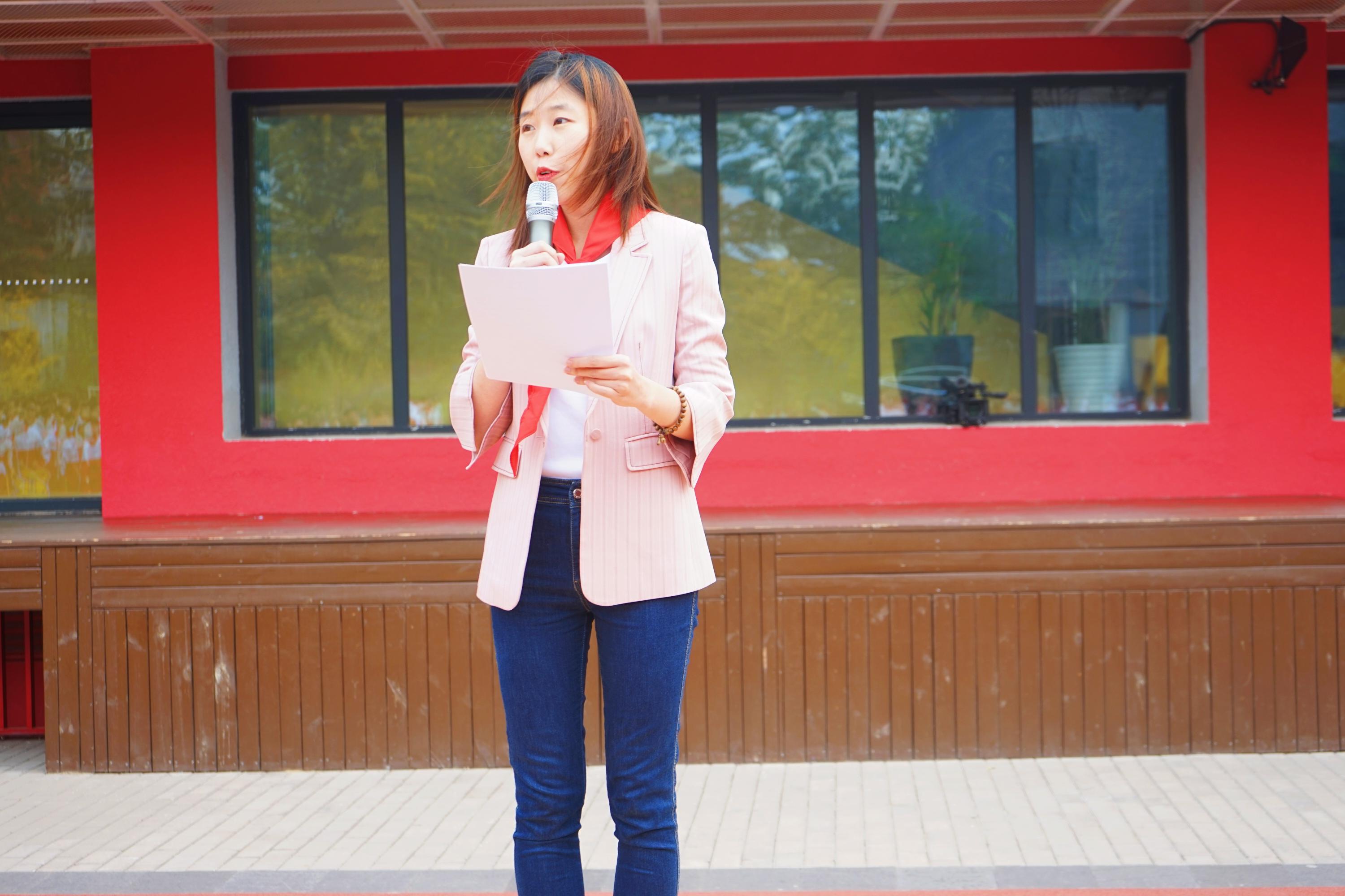 团委书记王梦怡老师宣布成立初一年级少先队大队的决定,崔岩校长为中队辅导员颁发聘书,期望初一年级全体师生明信仰、汲力量。