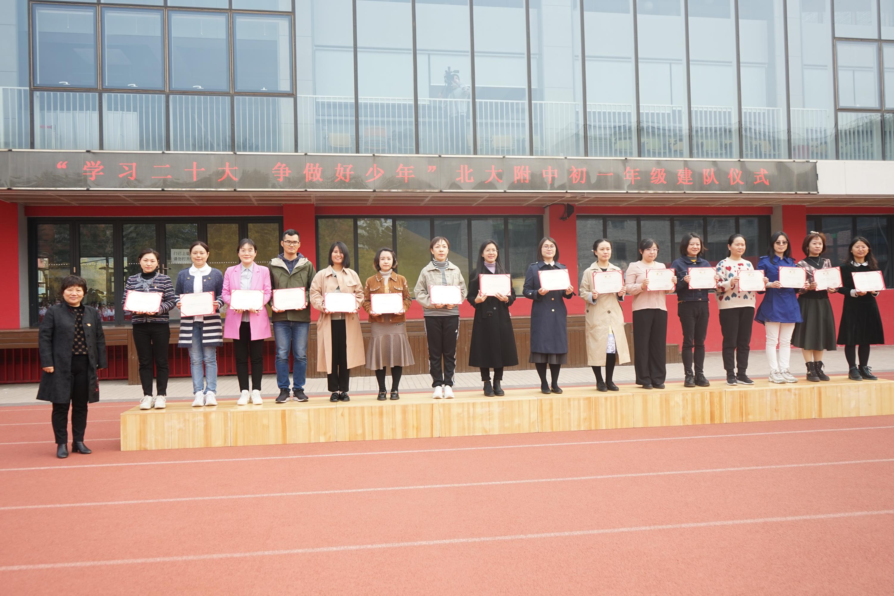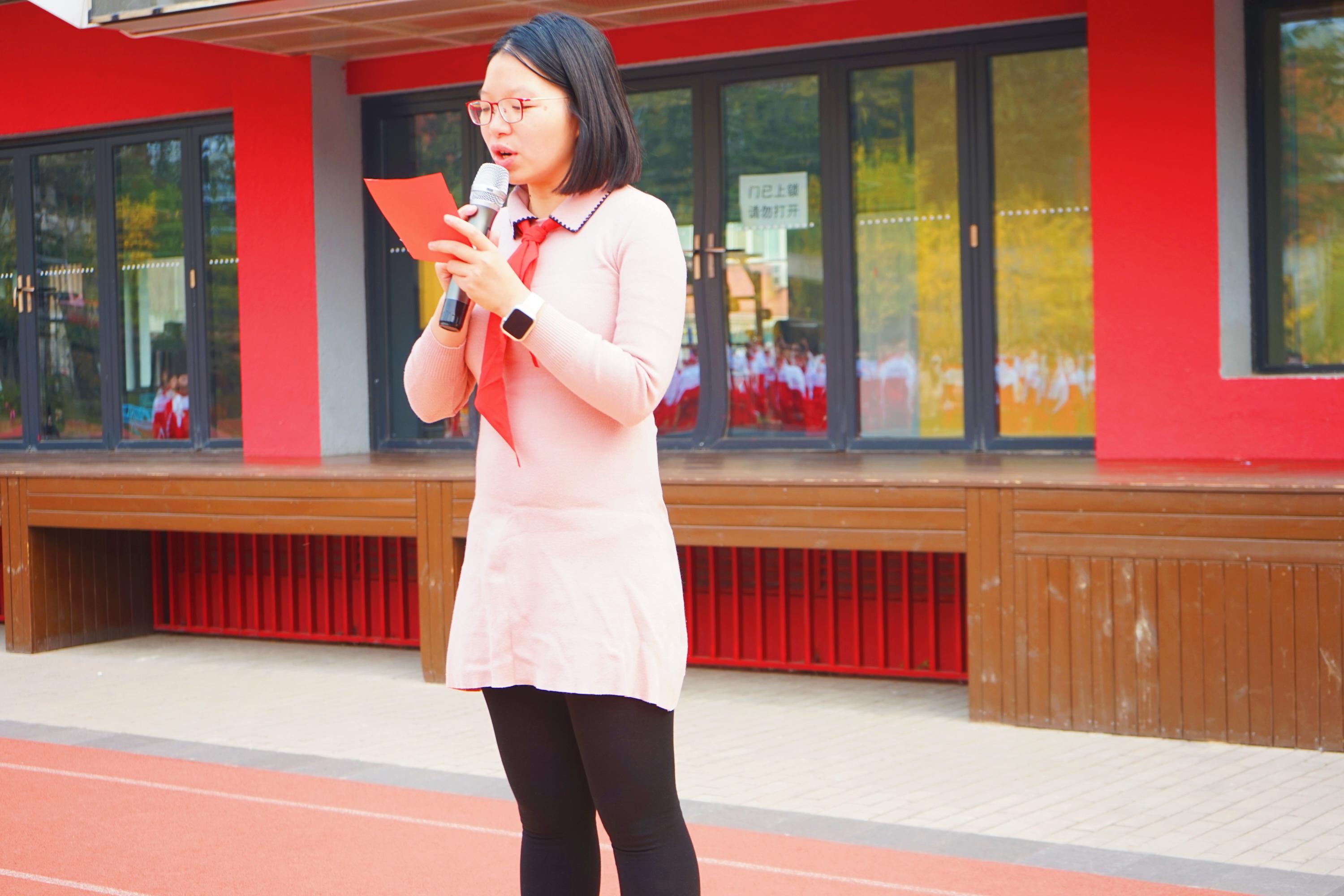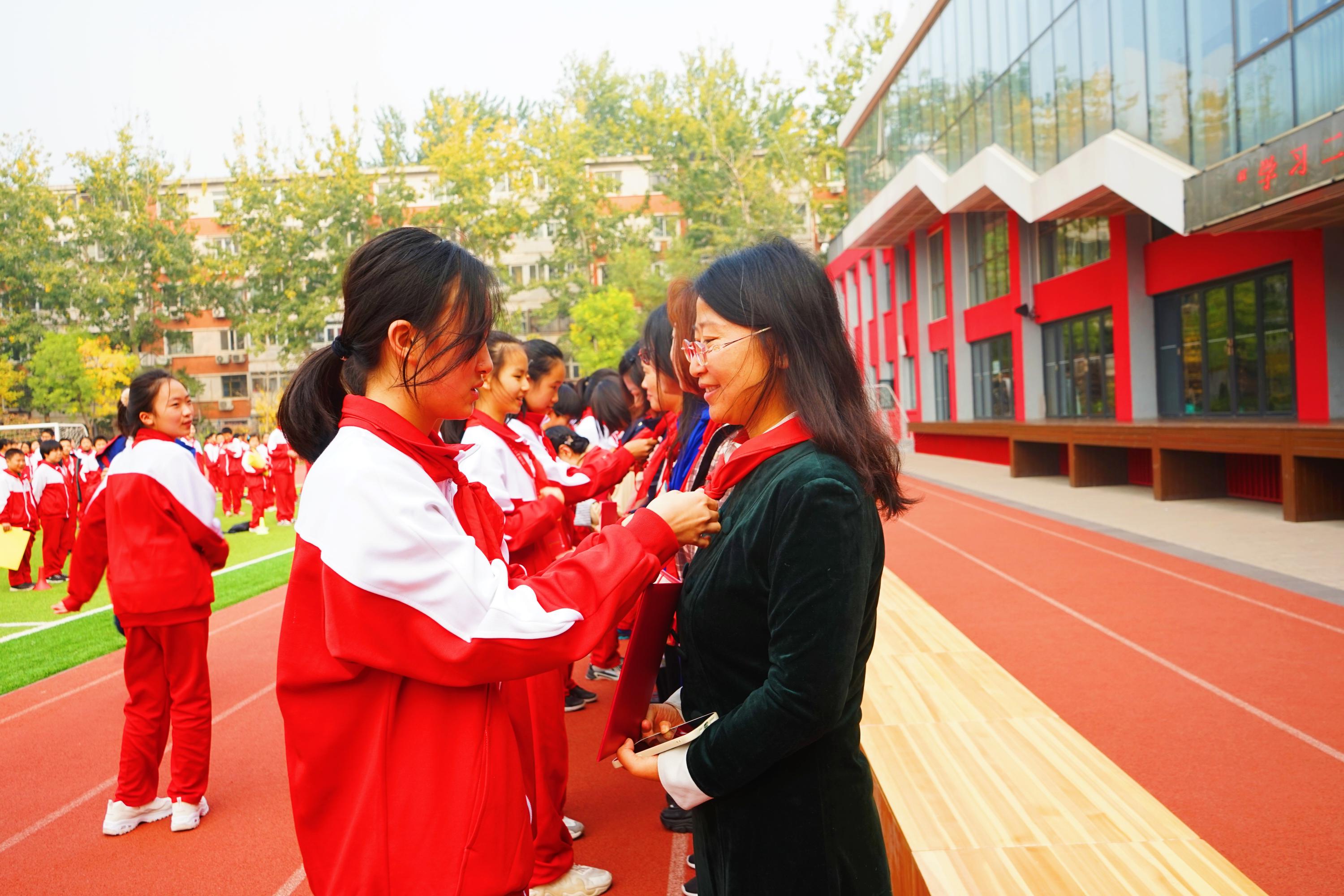 团委书记王梦怡老师宣布成立初一年级少先队大队的决定,崔岩校长为中队辅导员颁发聘书,期望初一年级全体师生明信仰、汲力量。