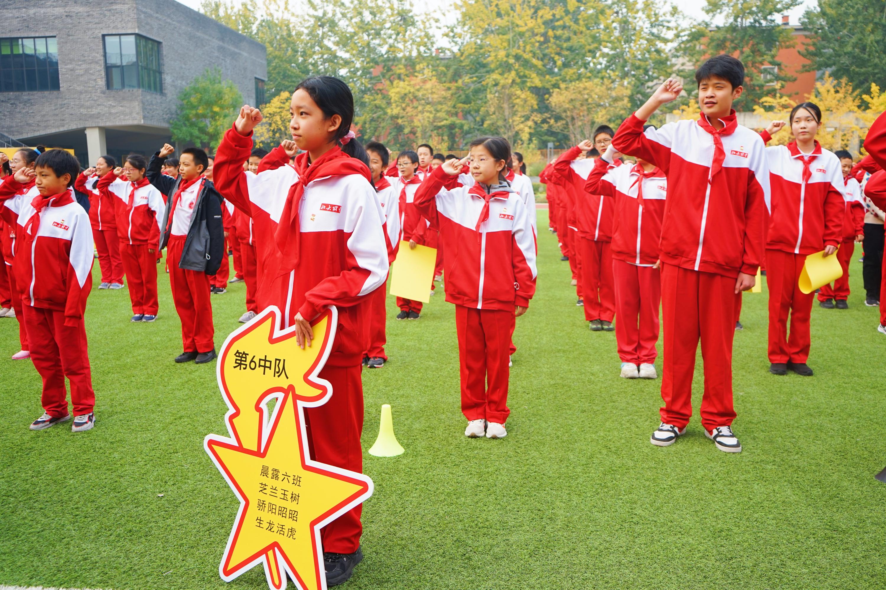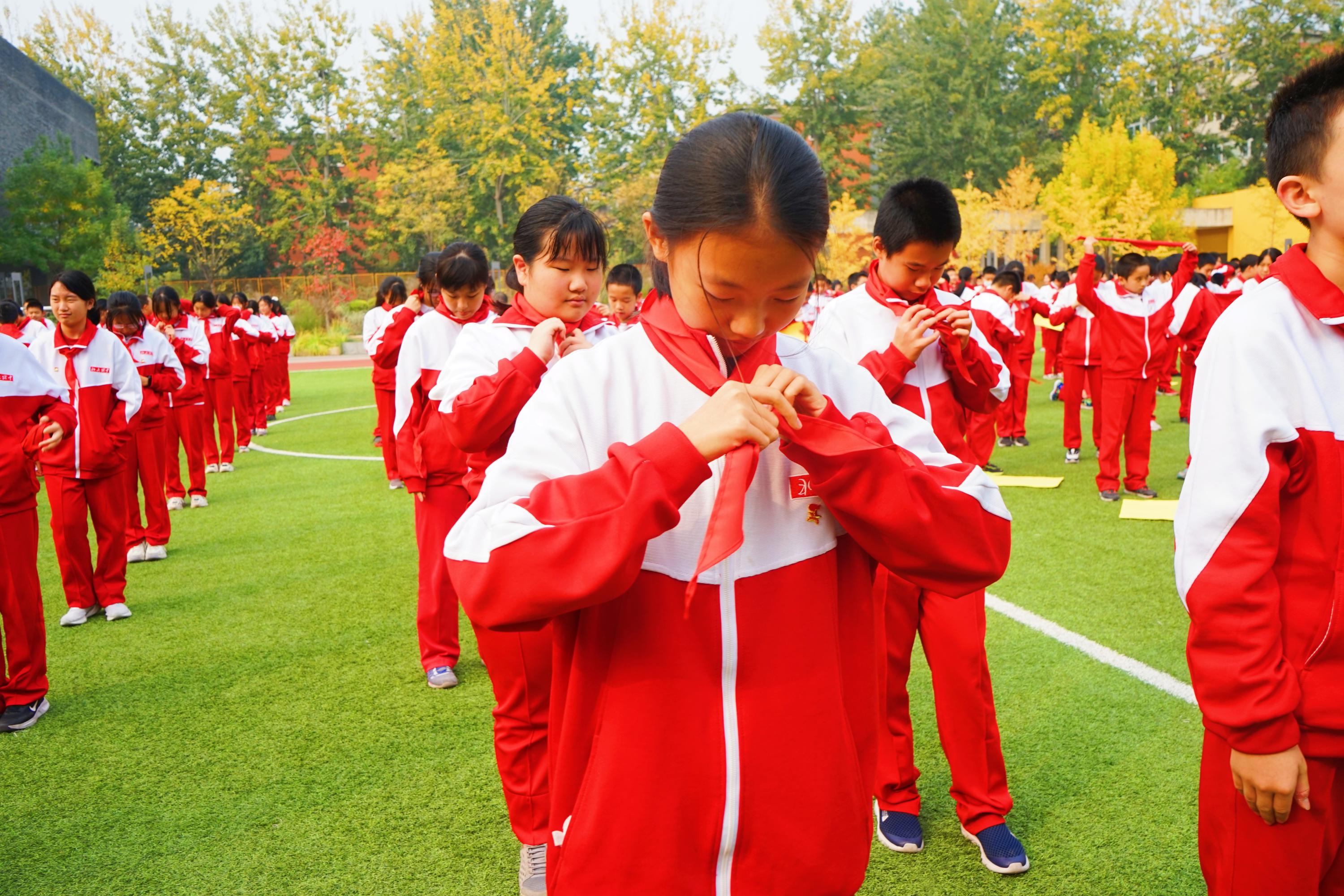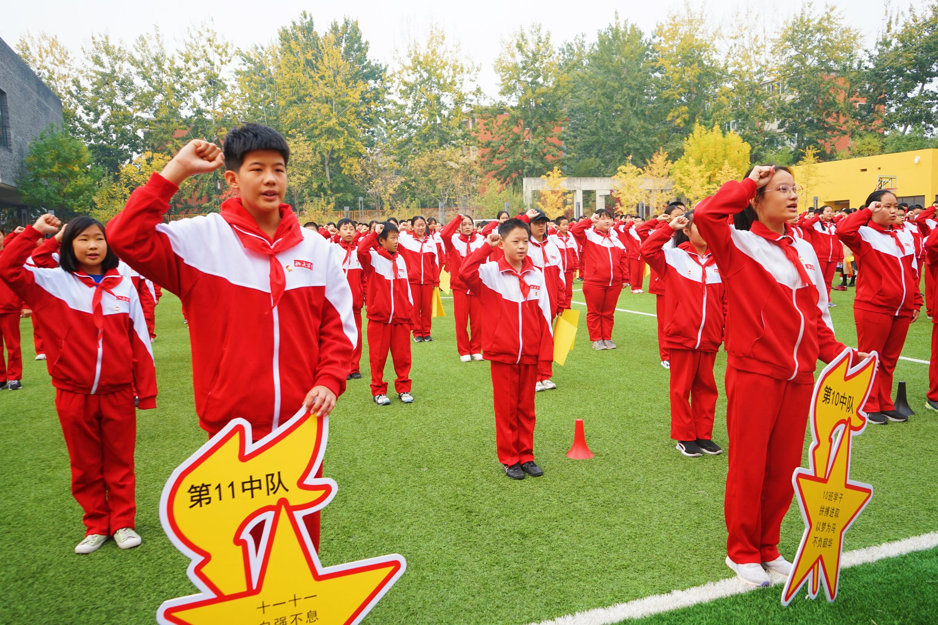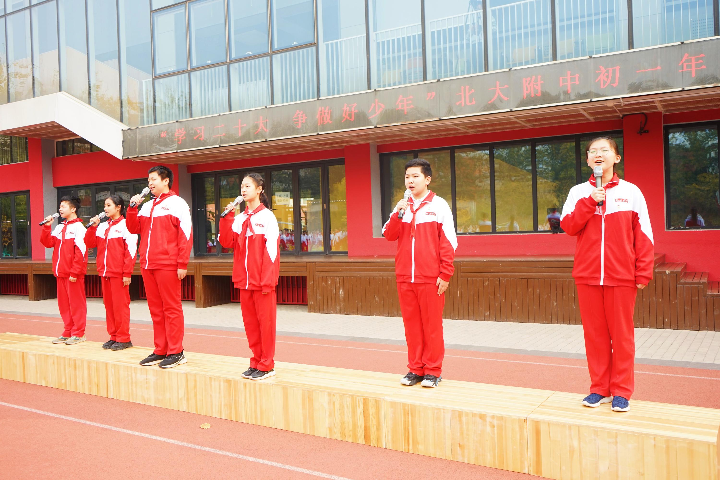 今年是中国少年先锋队成立73周年。为增强少先队员的光荣感和组织归属感,2022年10月26日上午,北大附中初中部校领导、初一年级班主任和全体学生齐聚校园操场,参加“学习二十大 争做好少年”建队仪式。