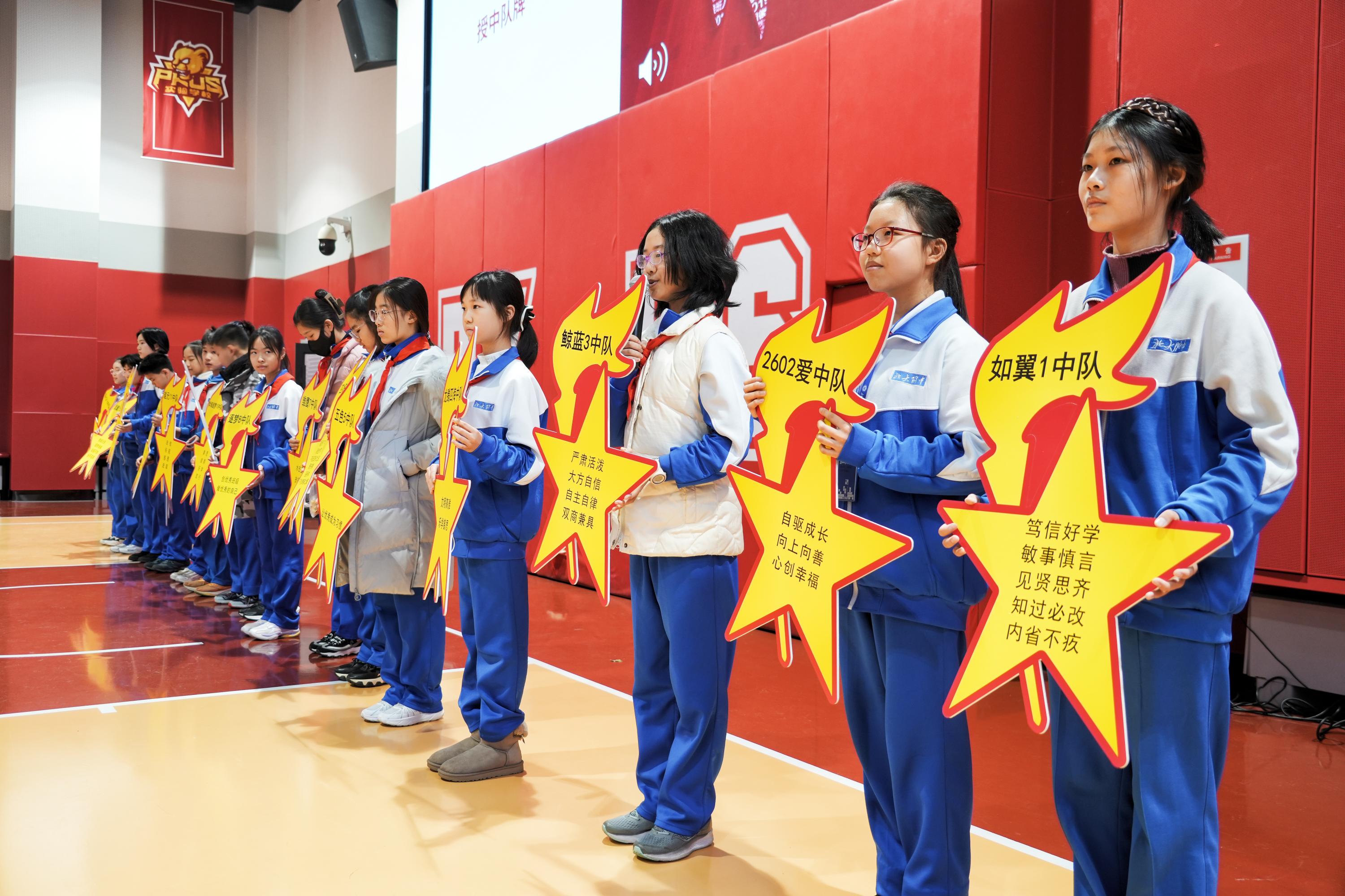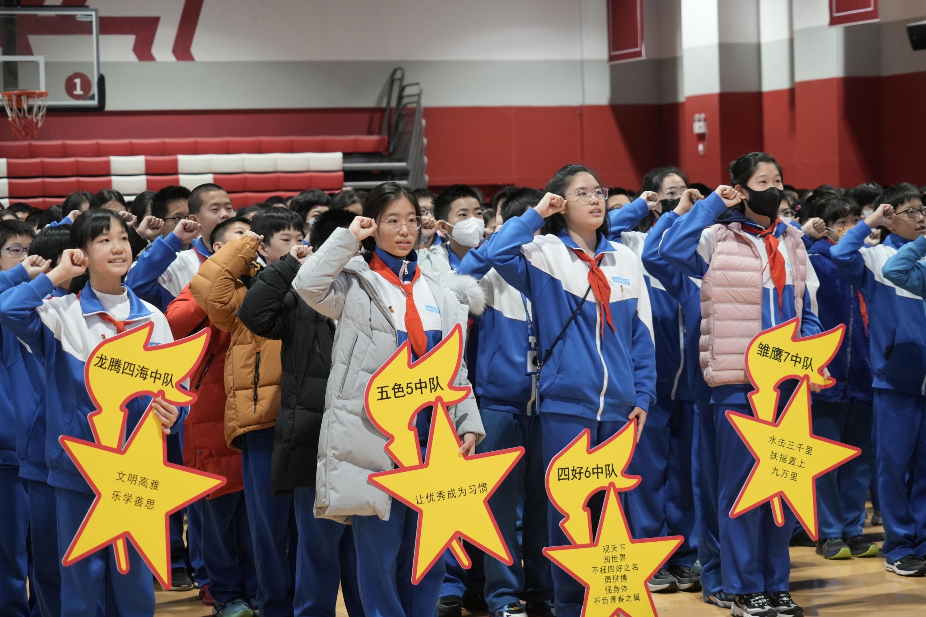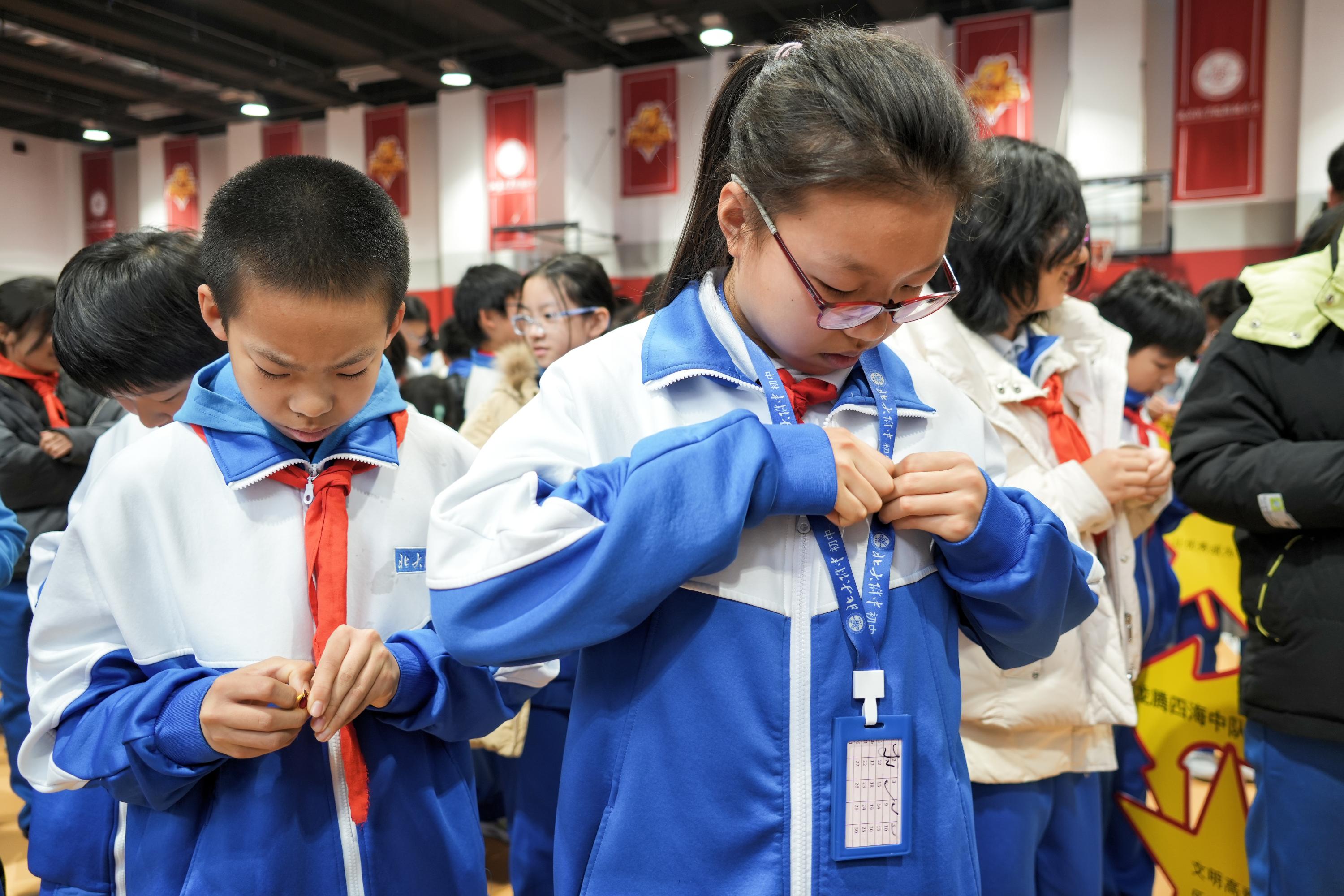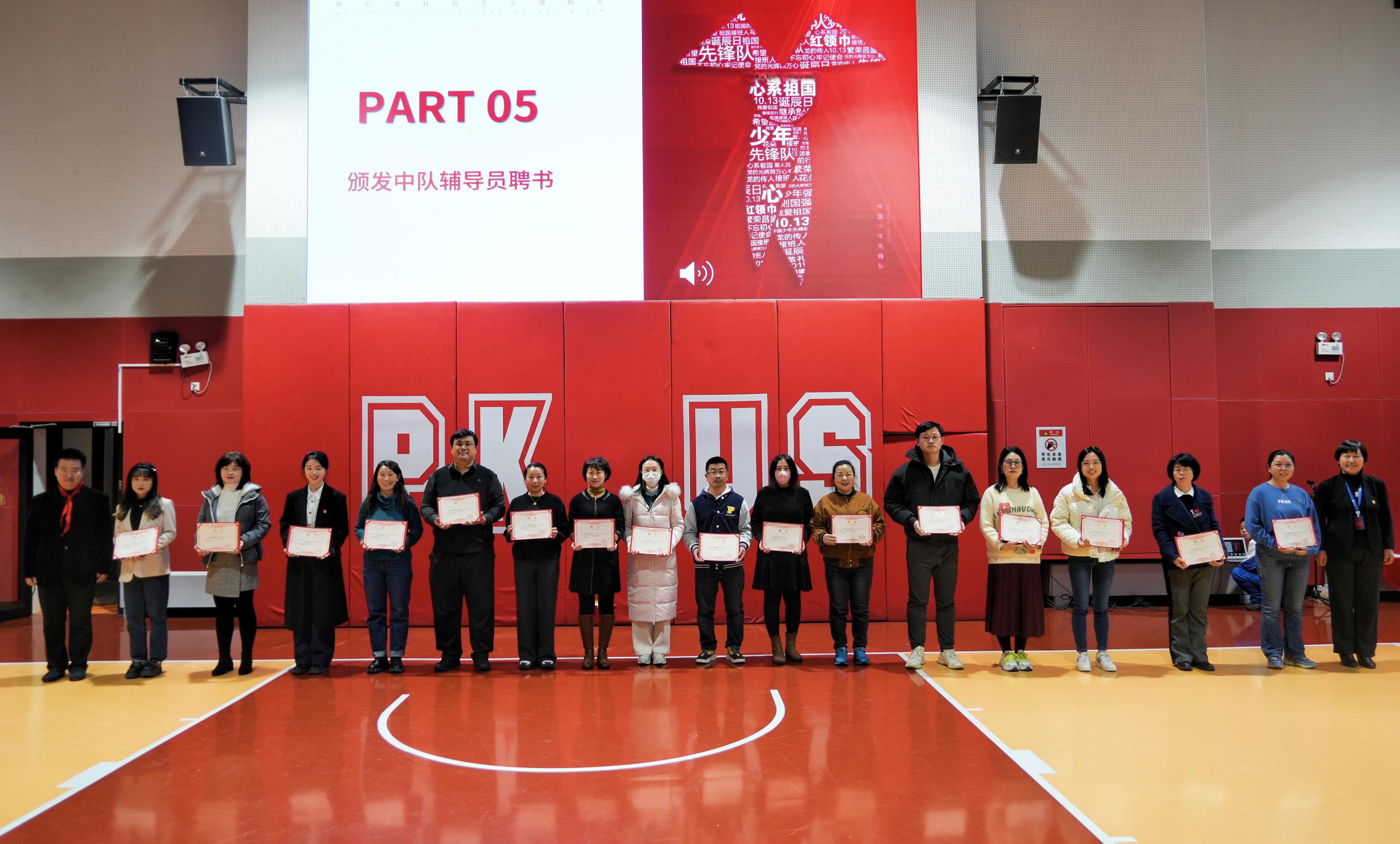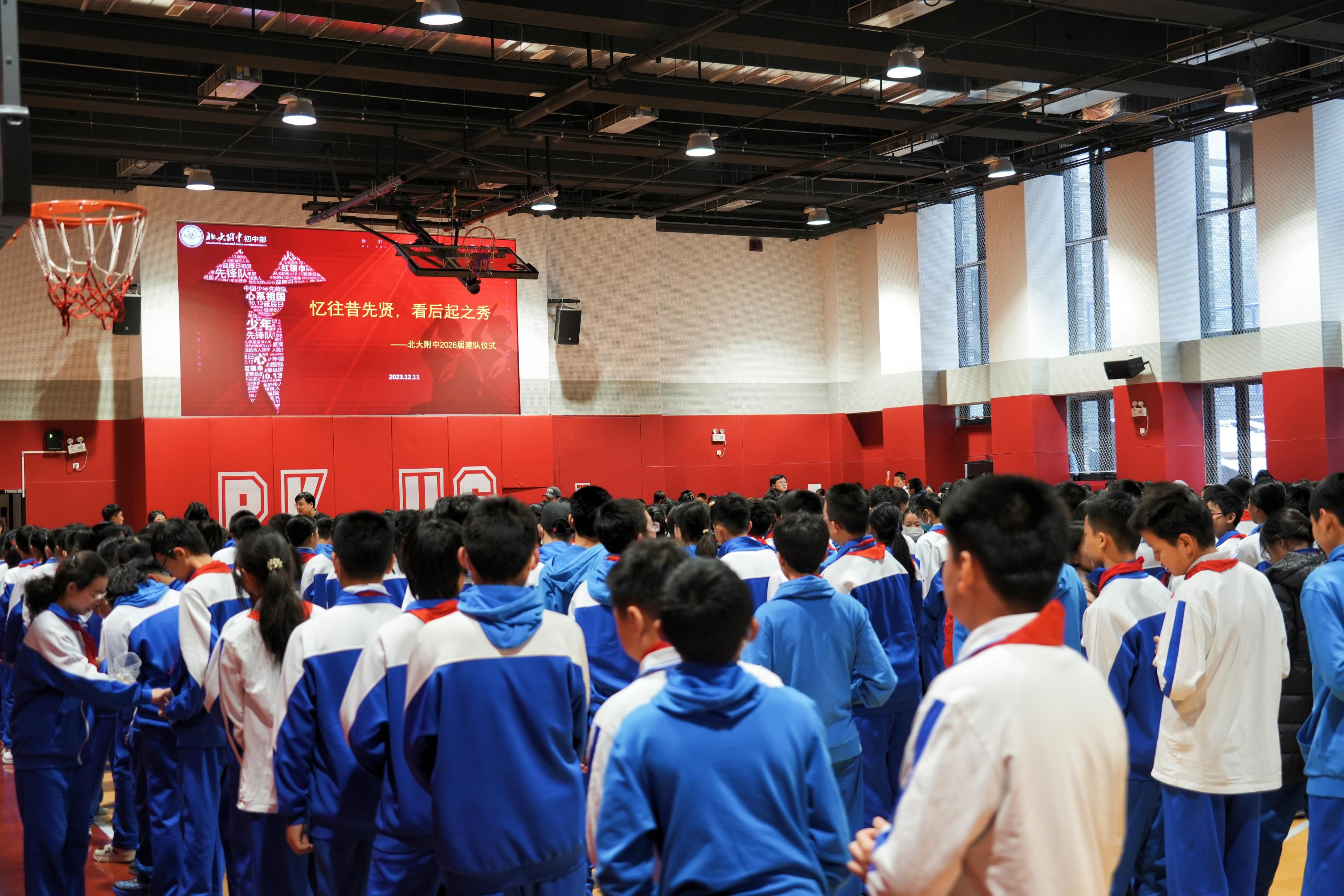 回首我国革命历程,无数先烈用鲜血书写革命篇章,在黑暗中用信念点亮一盏盏明灯,铸就了我们今天的幸福生活。为热烈庆祝中国少年先锋队建队74周年,“一二·九”学生爱国运动88周年,增强少先队员的光荣感、归属感,12月11日,“忆往昔先贤 看后起之秀”北大附中2026届少先队建队仪式,在畅春园校区篮球馆隆重举行。