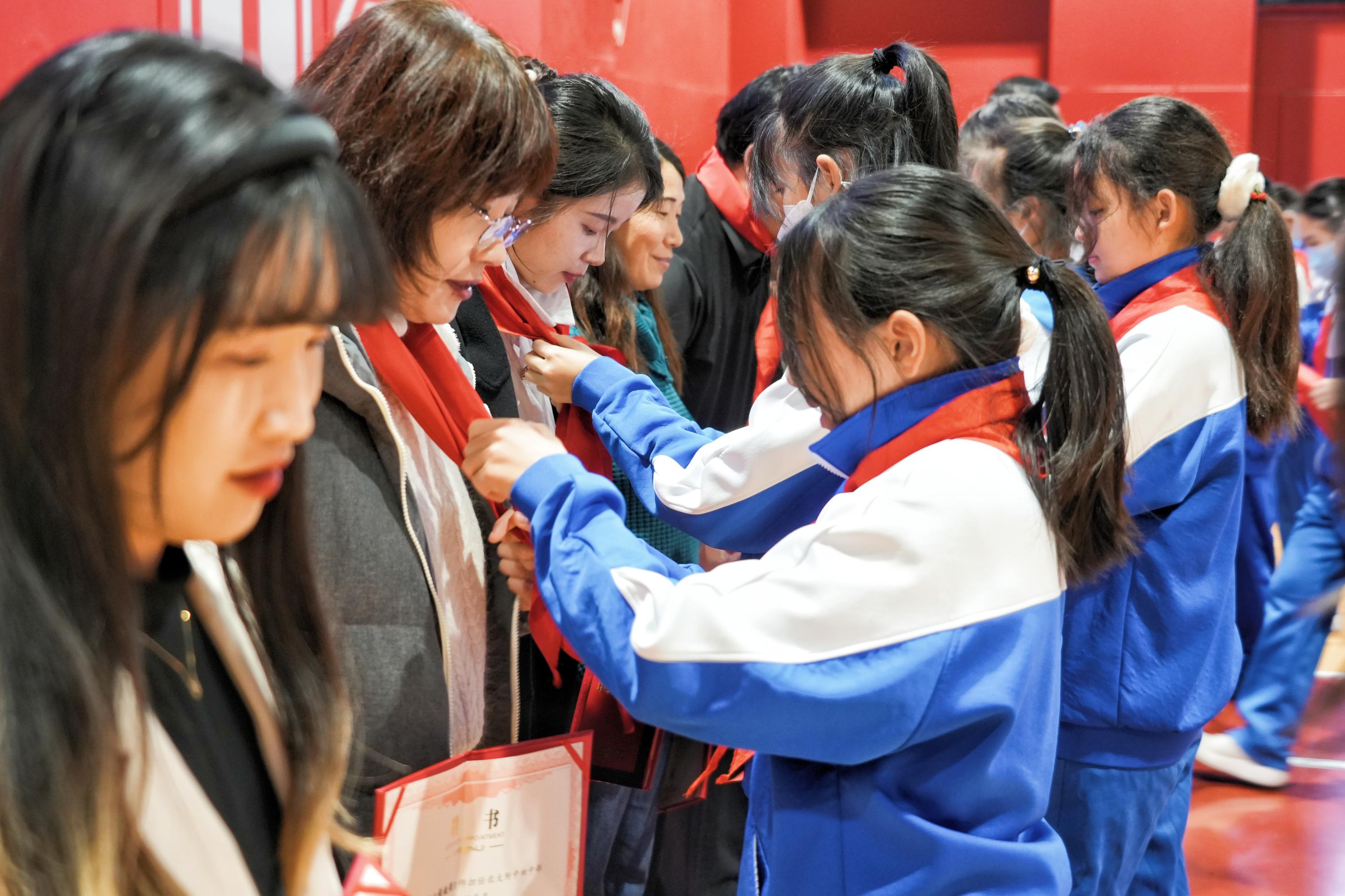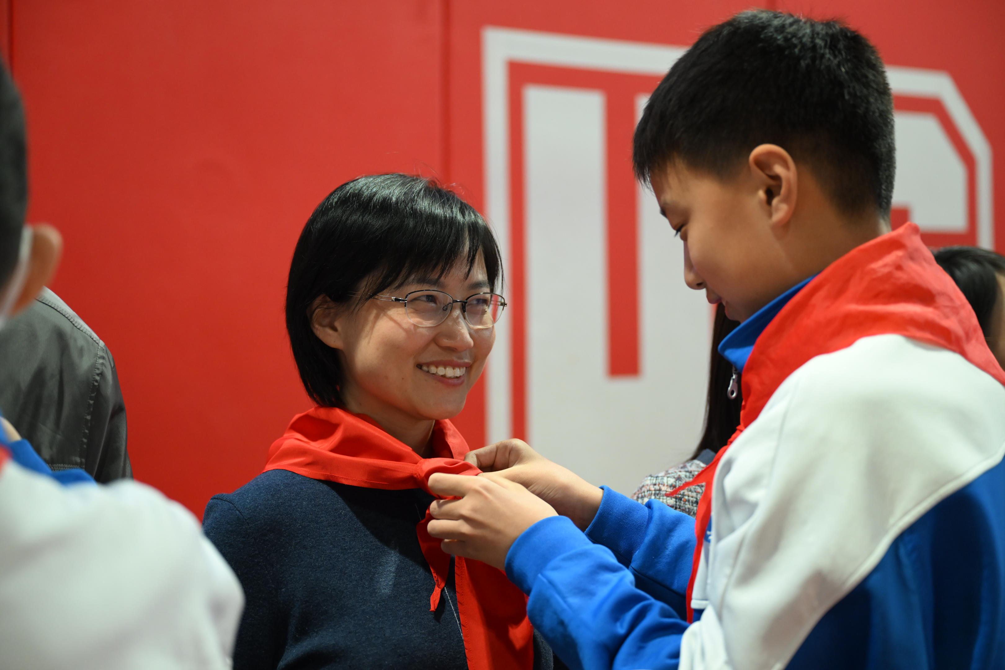 少先队有一群亲爱的伙伴,也是我们的良师益友,他们的名字叫——辅导员。这一刻,我们为辅导员们系上红领巾,未来在报效祖国的道路上,您与我们携手同行!