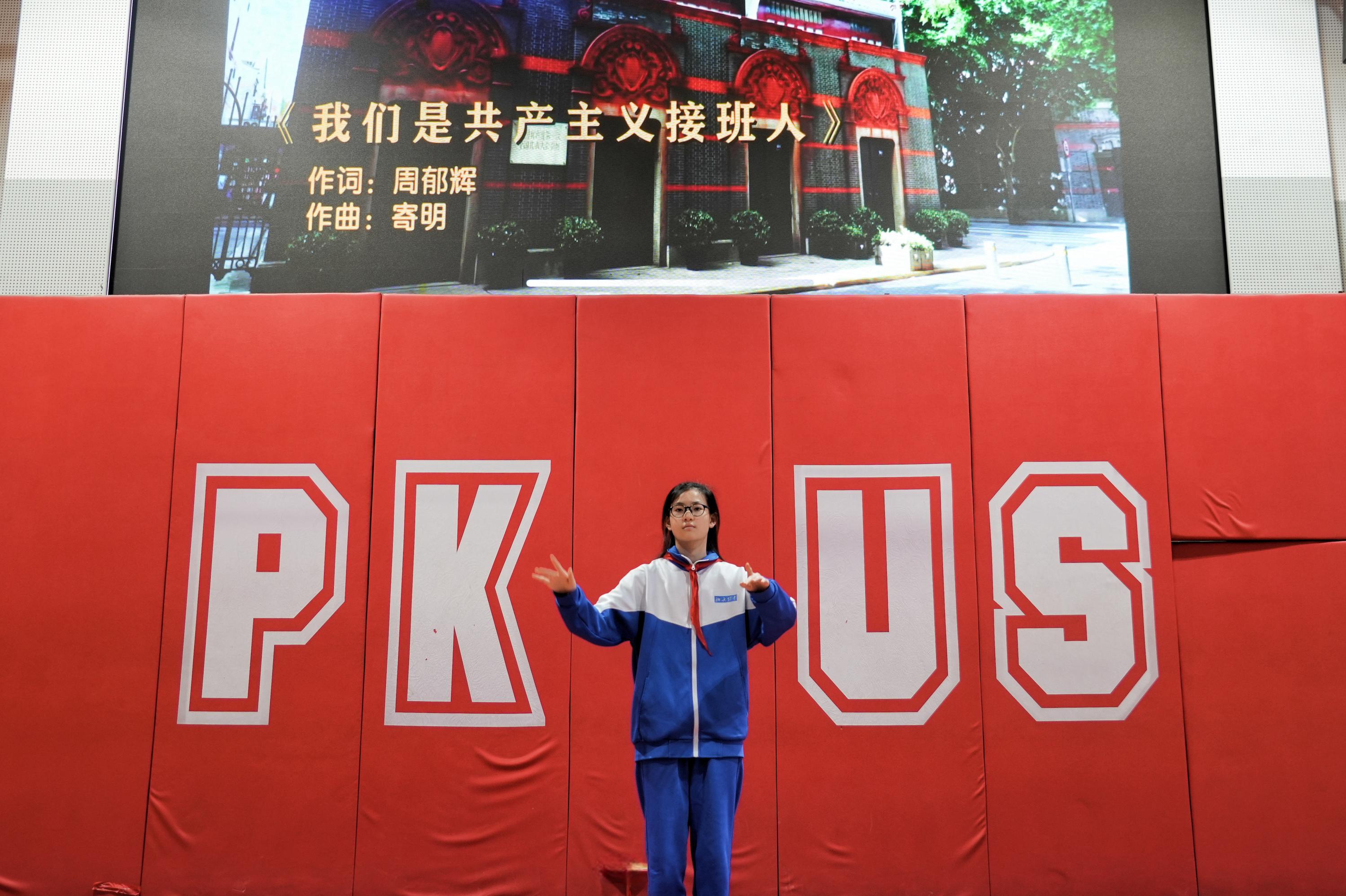 齐唱《我们是共产主义接班人》 张宜涵同学指挥