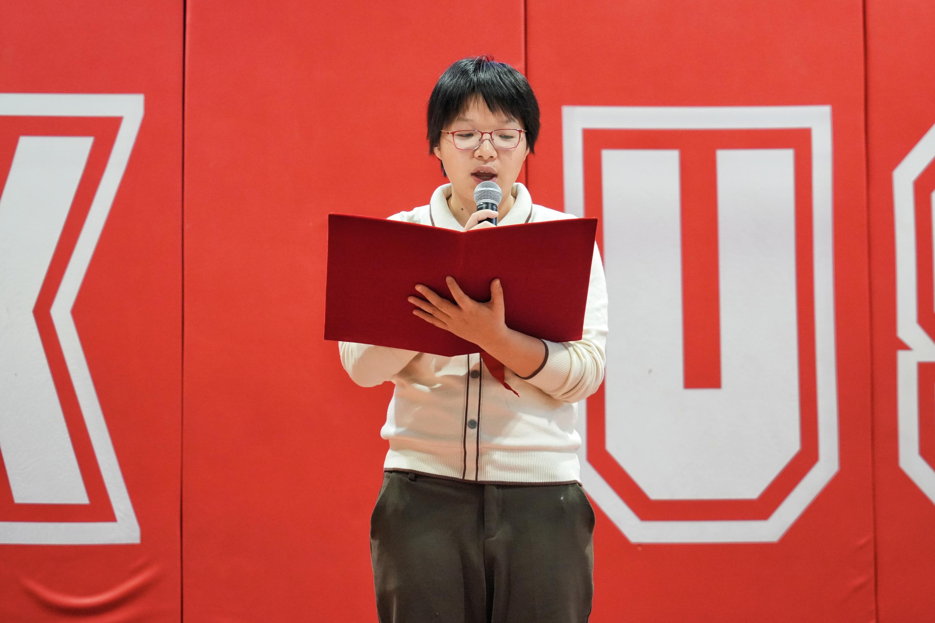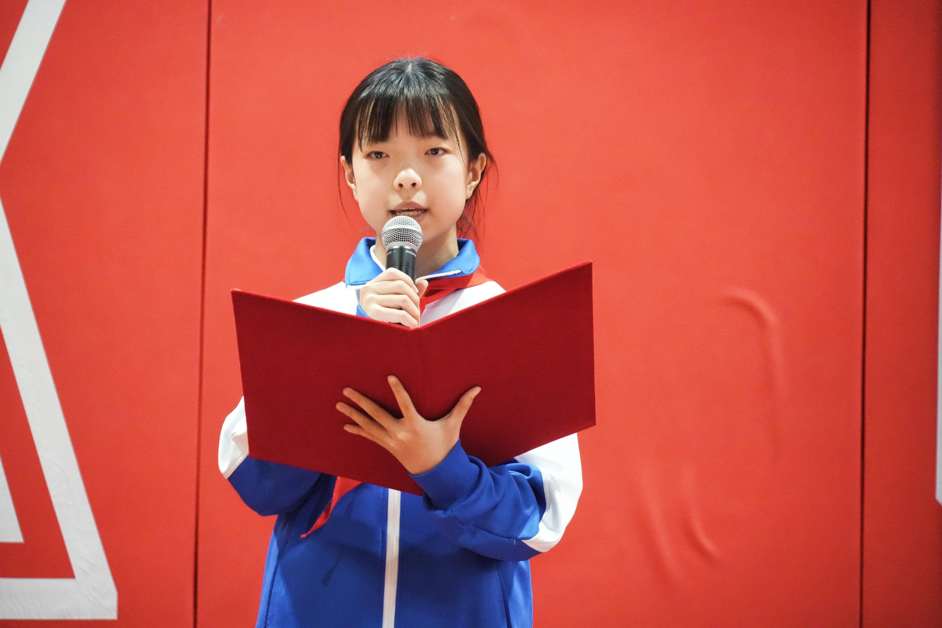 团委书记王梦怡老师宣布《北大附中2026届少先队成立决议》、《北大附中聘任少先队中队辅导员决议》