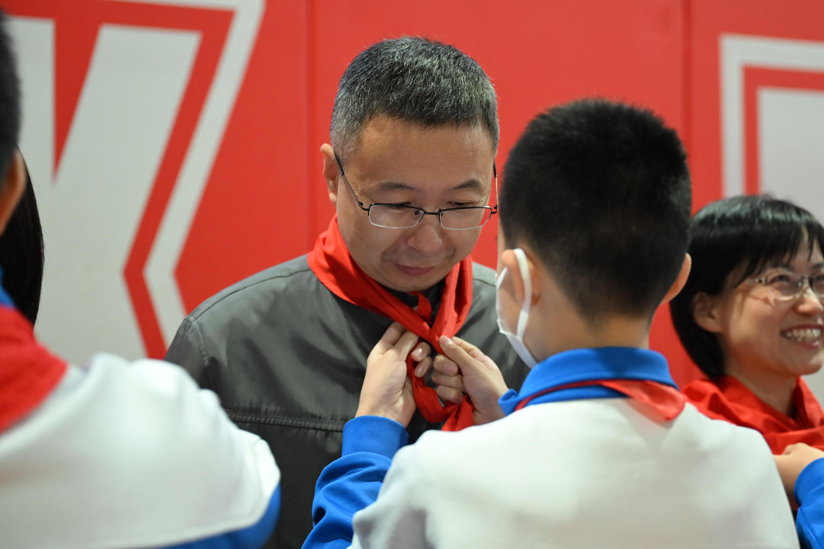 校外辅导员代表刘畅说到:“作为校外辅导员,我们将用爱心、热心和智慧全力支持红领巾事业,成为少先队员们的良师益友和指导者。希望少先队员们能够珍惜这份荣誉和责任,听党话跟党走,在北大附中这个美好的环境中,成长为国家的栋梁!”