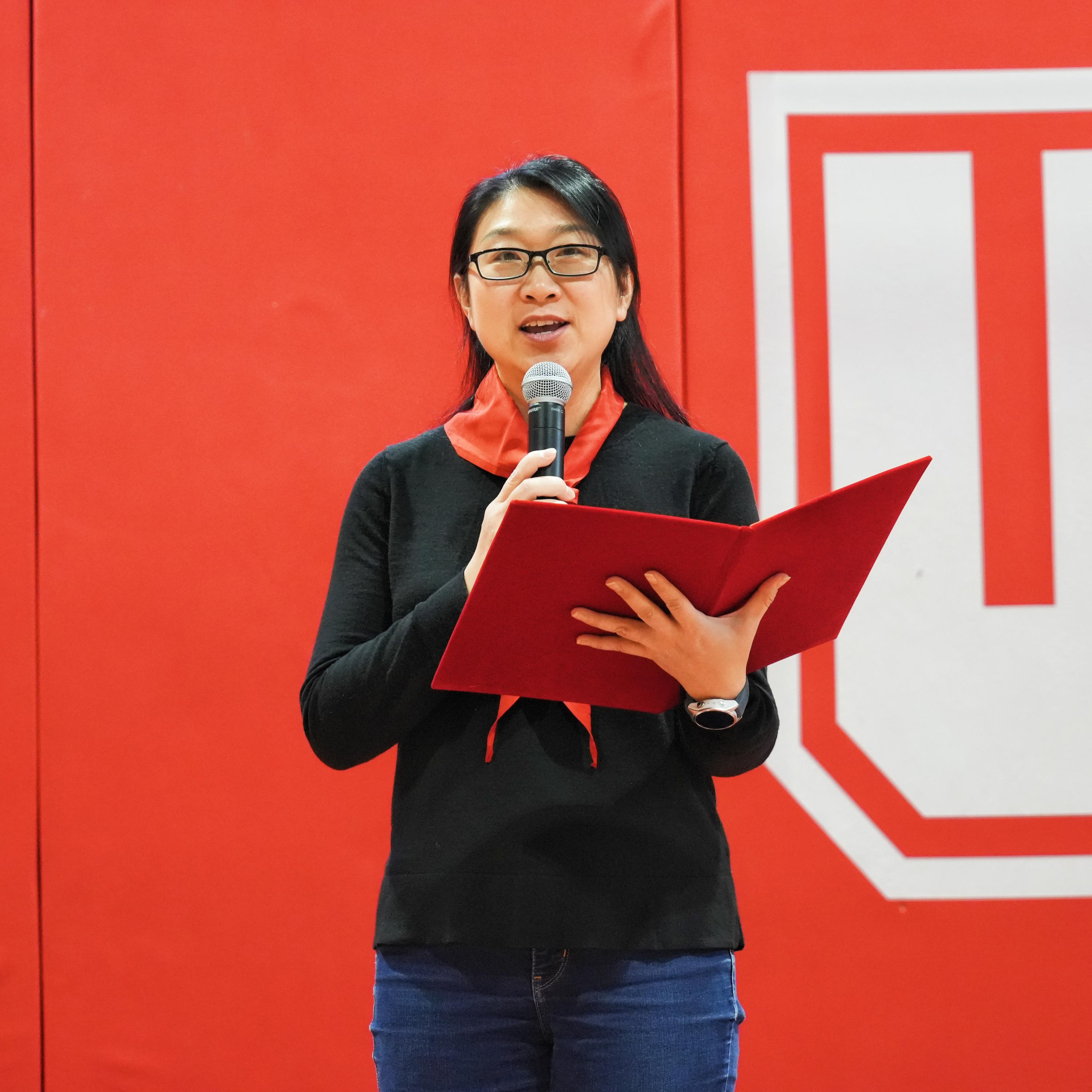 党员教师代表于潇晴老师提出希望:“希望你们坚定信念,志存高远,在实现中国梦的生动实践中放飞青春梦想;希望你们健康自信,尊重自然,在生活中关爱他人;希望你们善于学习,勇于创新,不断探索,成为面向未来的新时代领军人才。今天你们在北大附中的沃土上茁壮成长,明天将成为国家的栋梁,在不懈奋斗中书写人生华章!”