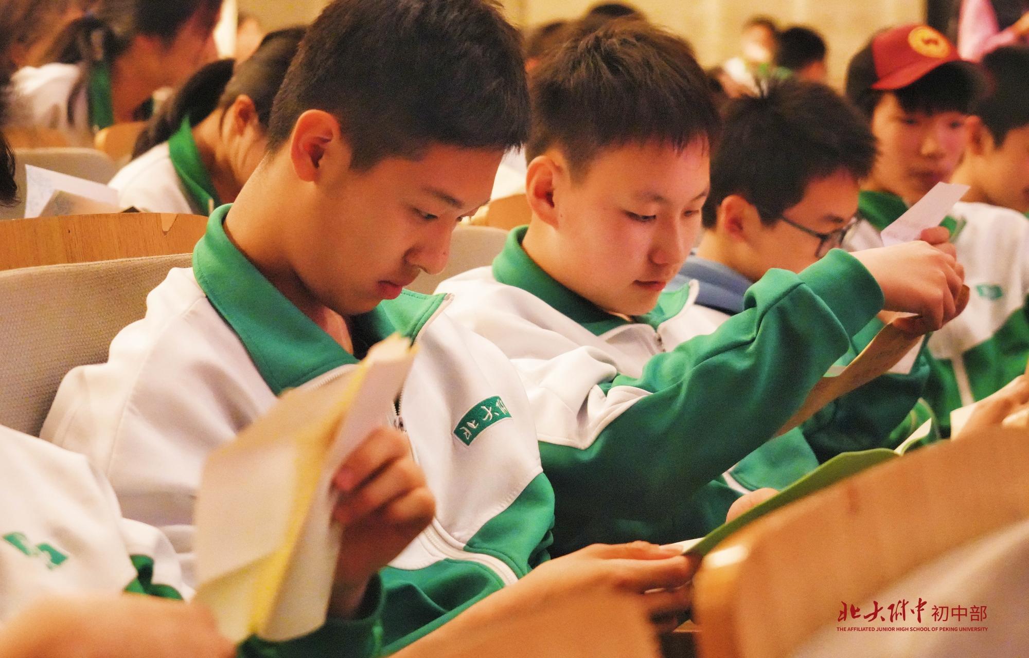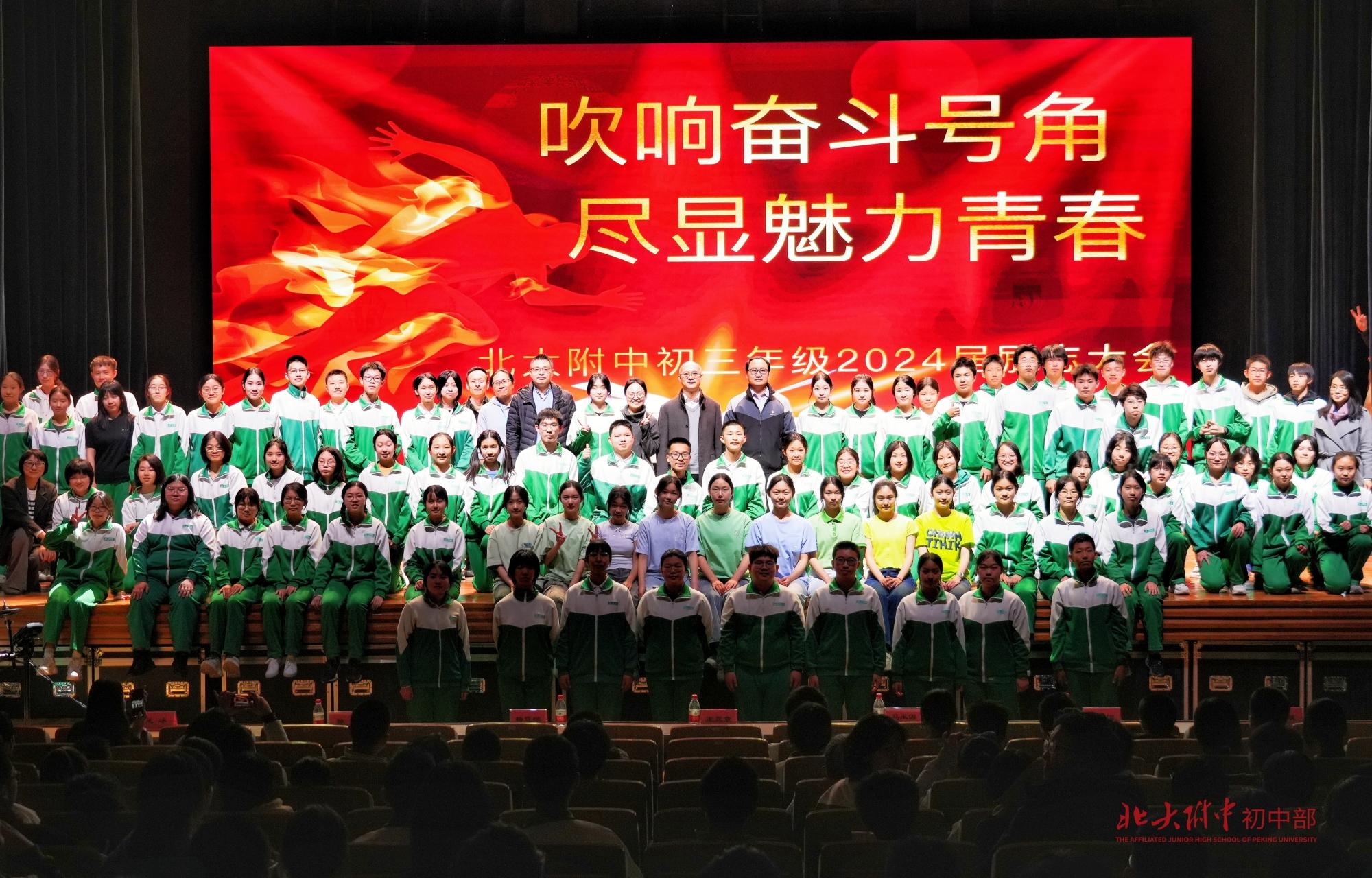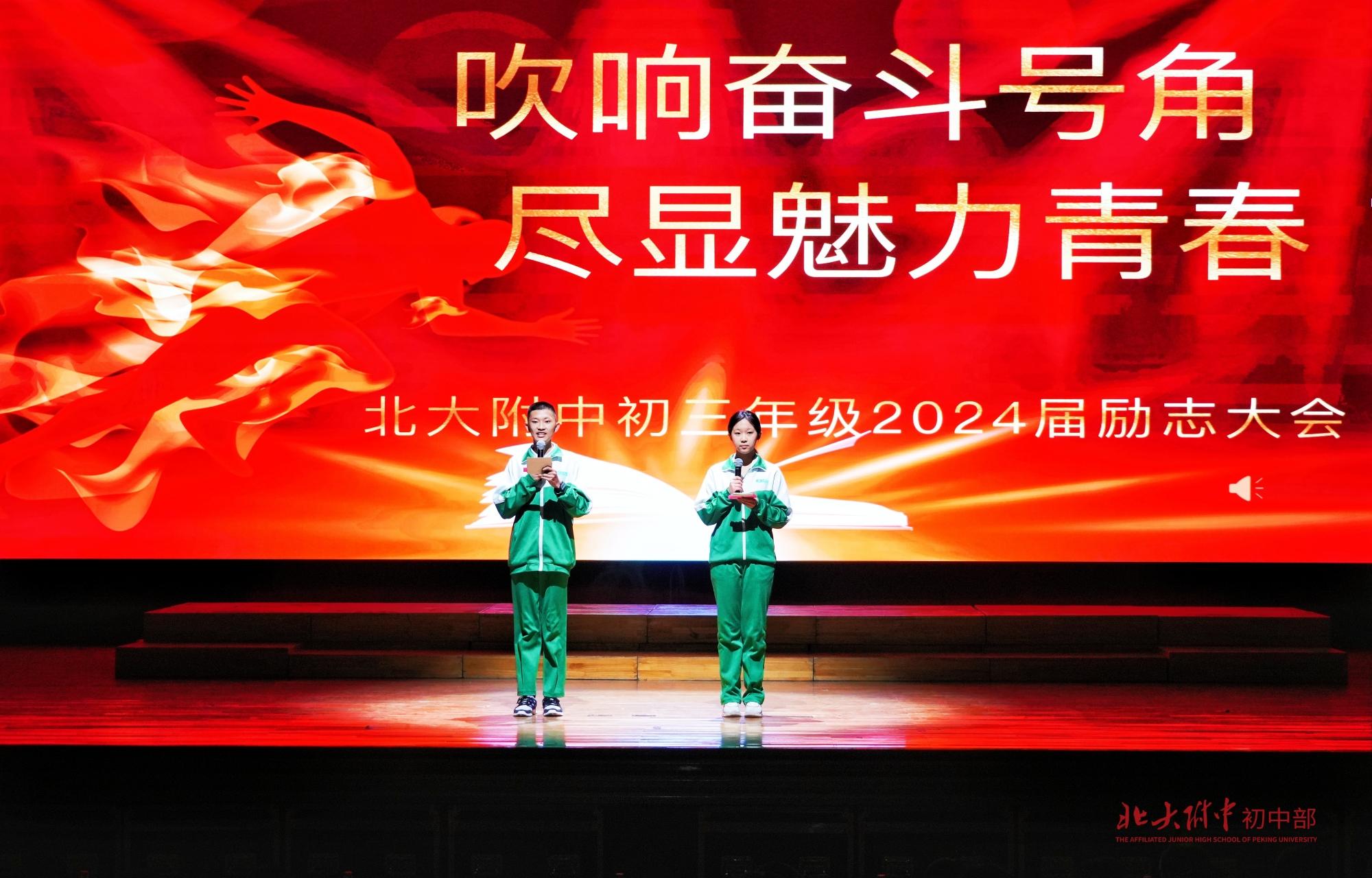 2024年3月19日下午,初三年级2024届中考励志大会在北大附中校本部致蕙礼堂举行。本次大会以“吹响奋斗号角,尽显魅力青春”为主题,庄严的仪式,拼搏的誓言,师生信心满满,斗志昂扬!活动由初三年级组统筹,孙博涵、史嘉仪两位同学担任主持人,校领导及初三年级全体师生参会。
