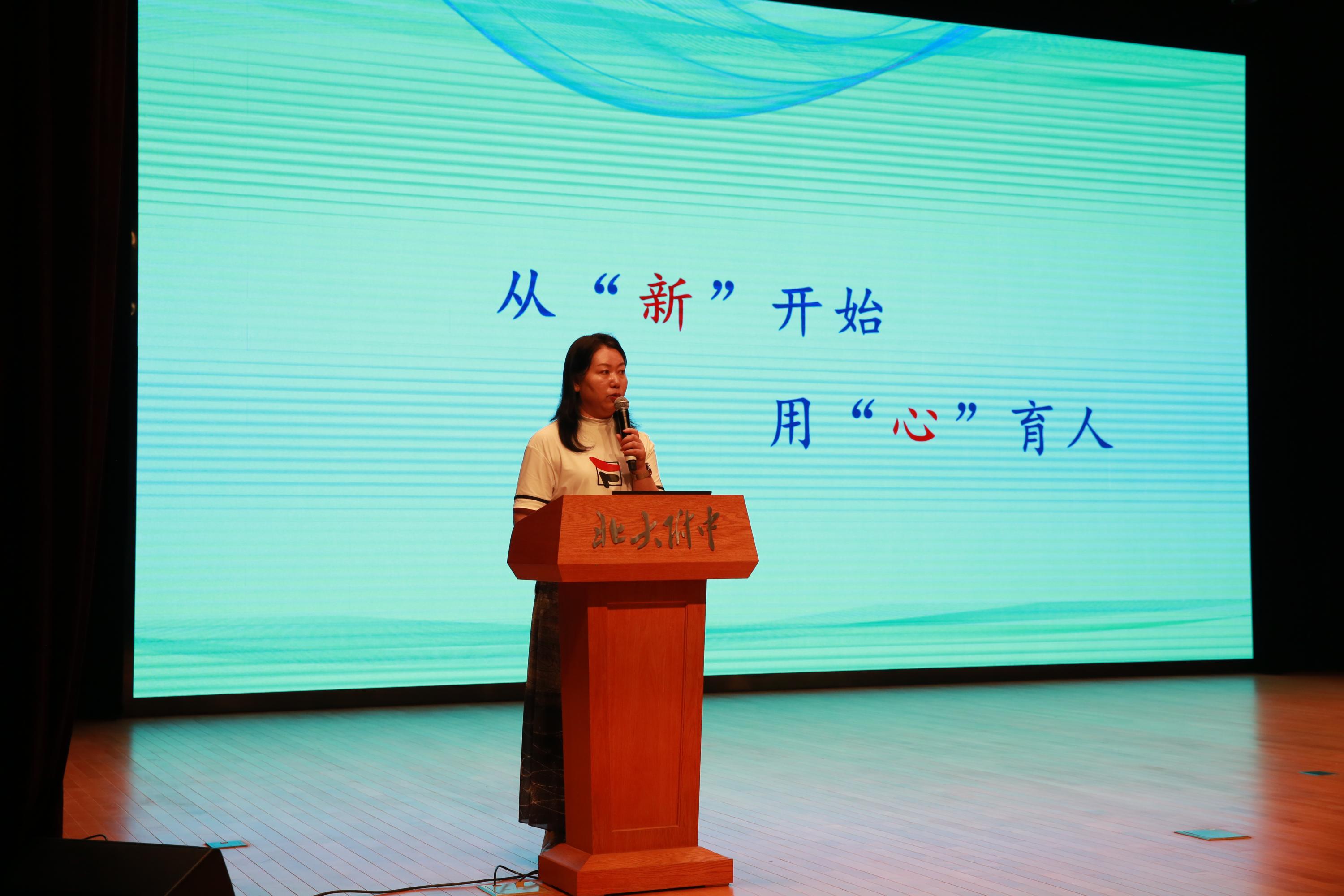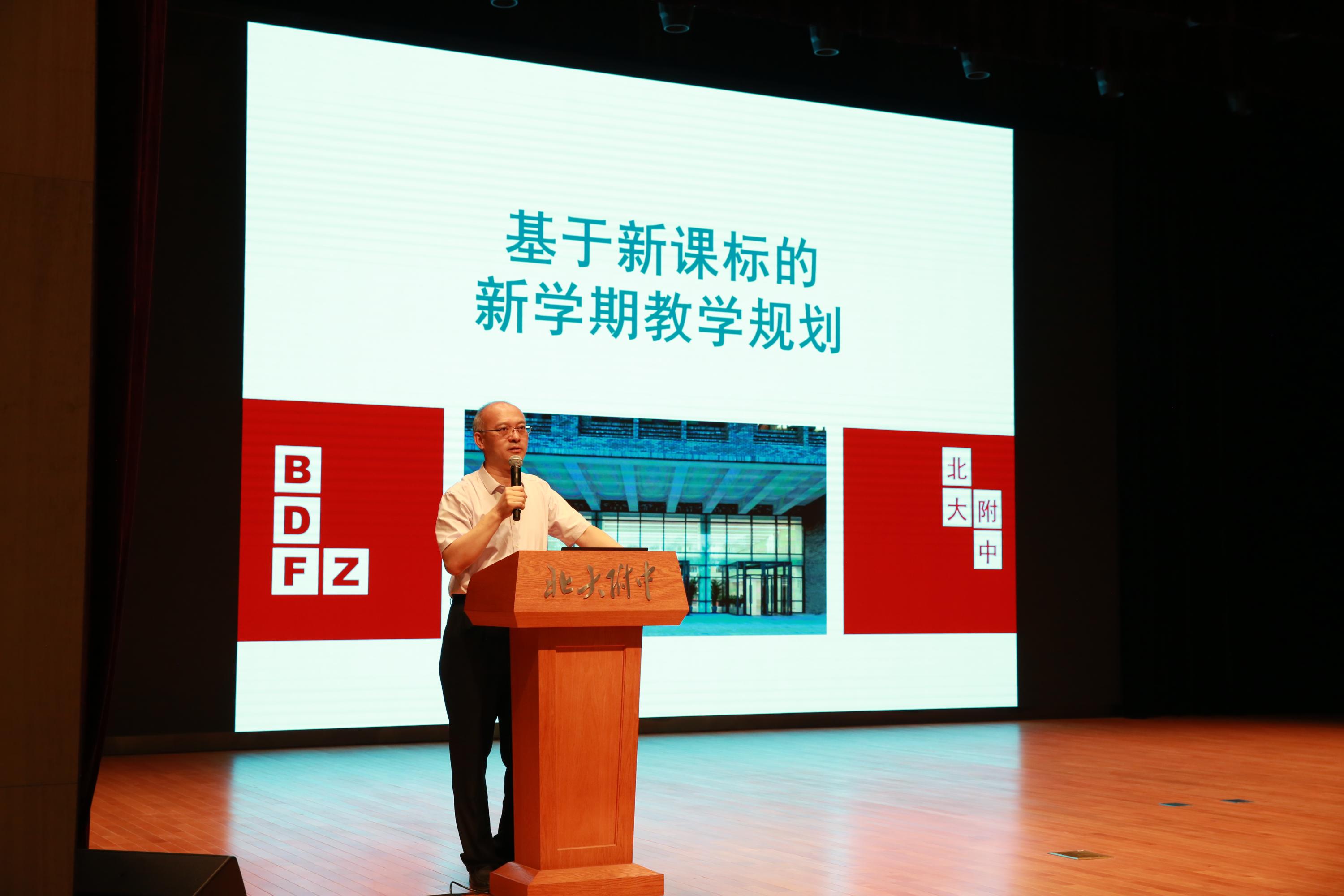 展示活动的最后,北大附中马玉国校长做大会发言。他首先表扬了初中部全体教工为新学期所做的充分准备,代表学校感谢老师们的无私奉献。在讲话中,马校长重点强调初中阶段一定要培养学生养成好的学习及思维的习惯,保持学生对学习的兴趣,在此基础上建立良好的规则意识。课堂教学要更重实践、更重反馈,要关注到每一个学生的接受度。马校长希望老师们把新课标融入到自己的课堂中,把每一堂课都讲透彻,变成一节精品课,让核心素养切实落地。