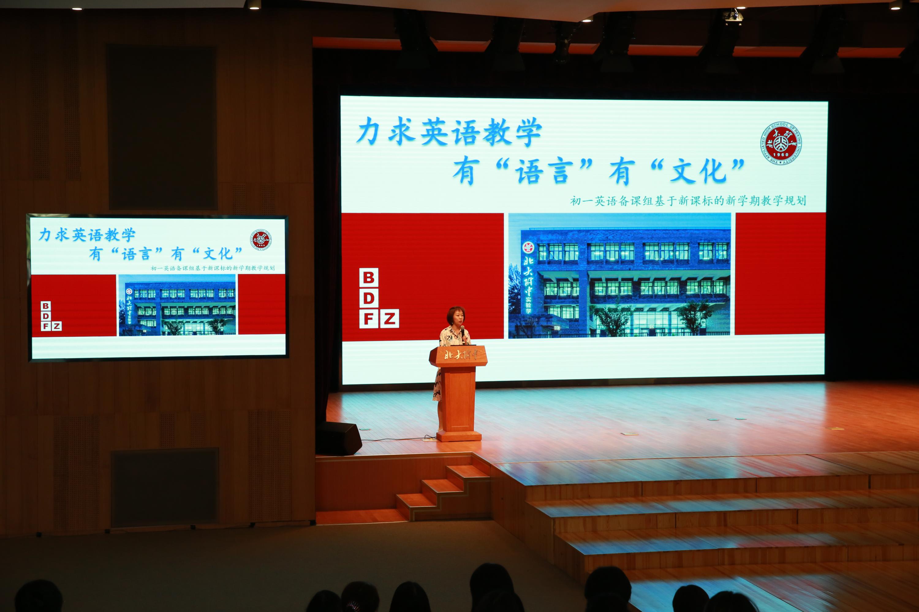王楠老师代表初一语文备课组汇报了新课标理念在课堂上落地的具体方案。老师们一致认为,我们需要立足北大附中语文课程的优良传统,遵循新课标精神,按照日常生活、文学体验、跨学科学习三类语言文字运用情境,整合识字与写字、阅读与鉴赏、表达与交流、梳理与探究等语文实践活动,对照新课标学业质量描述中的关键表现,来促成新课标的落地见效。语文组还与老师们分享了“我的姓名书”学科综合实践活动、学习任务群下的大单元学习、思辨性阅读与表达、跨学科特色的整本书阅读四个教学案例。