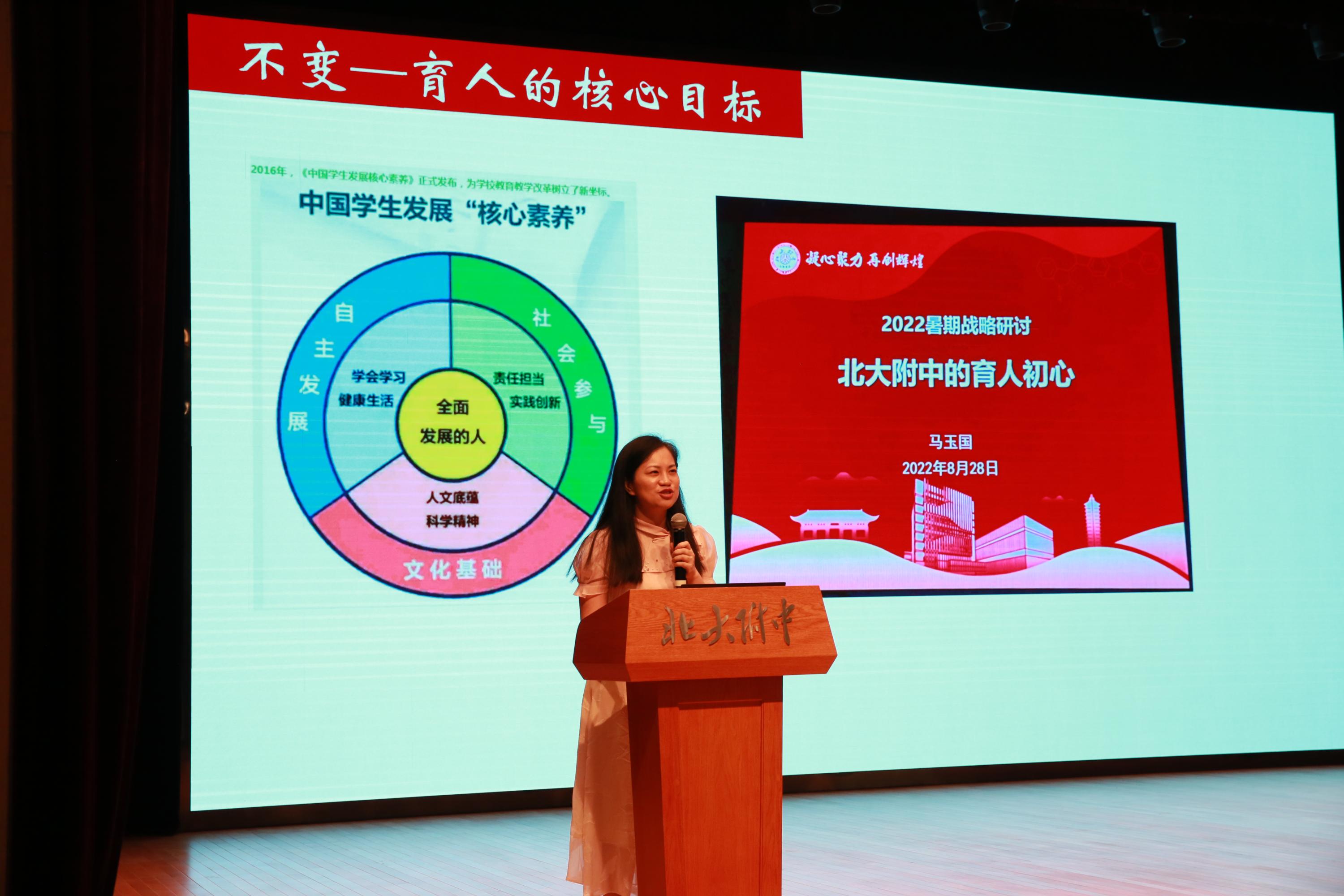 2022年8月27日-28日,初中部全体中层干部参加了北大附中2022年暑期战略讨论会,大家纷纷表示收获丰厚,倍受激励。张霞老师和刘鑫老师分别分享了自己参加北大附中暑期战略研讨会的感受。张霞老师主要介绍自己对于学校育人理念和教师个人成长的感想,希望老师们感受到、享受到教育教学带给我们的乐趣,利用学校搭建的各种平台,不断打造自己的核心竞争力,为建设品质校园、实现我校的高品质发展、做出自己的贡献;刘鑫老师简单介绍了研讨会内容,建议老师们钻研学科,站稳课堂,广泛涉猎,提升自我。同时加强与北京大学、高中部的衔接,积极探索贯通培养。