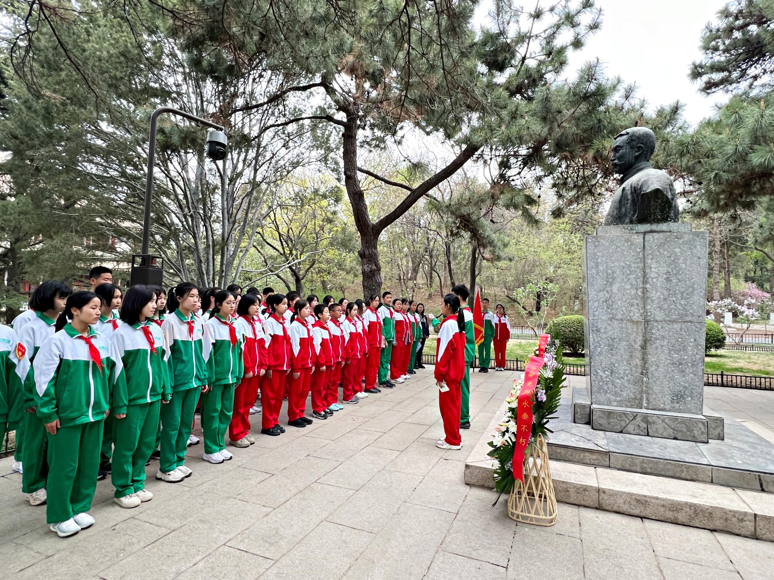 清明在即,为缅怀革命先烈,赓续红色血脉,初中部组织初一初二学生会全体成员及部分党员老师来到燕园李大钊同志塑像前,悼念先烈,告祭英魂。