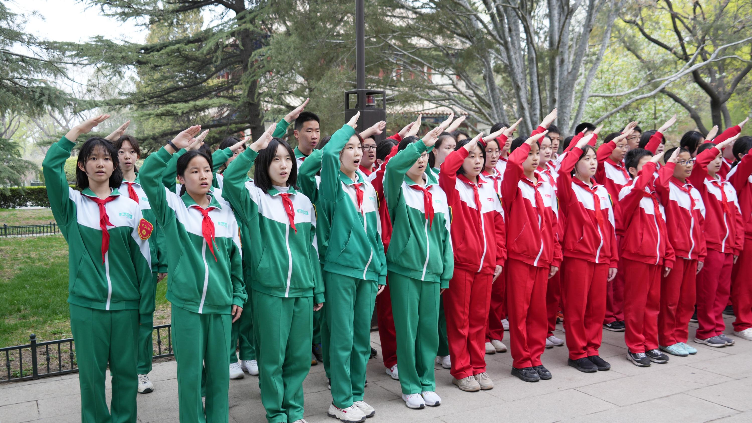 随着熟悉的国歌声在燕园响起,师生齐声唱响国歌。一切都仿佛被时间定格,唯有胸前的红领巾轻轻飘扬,传达着心中的缅怀之情。
