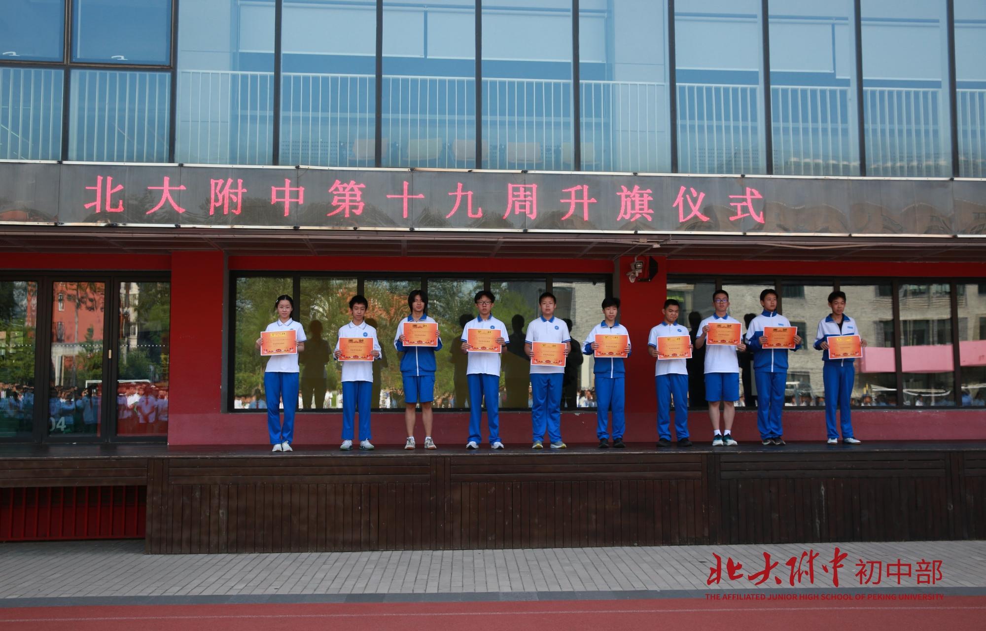 升旗手刘芷羽,担任学习委员兼任生物课代表,学校学生会纪检部成员,学习成绩优异,班委工作表现突出获得“校级优秀学生干部”称号。
