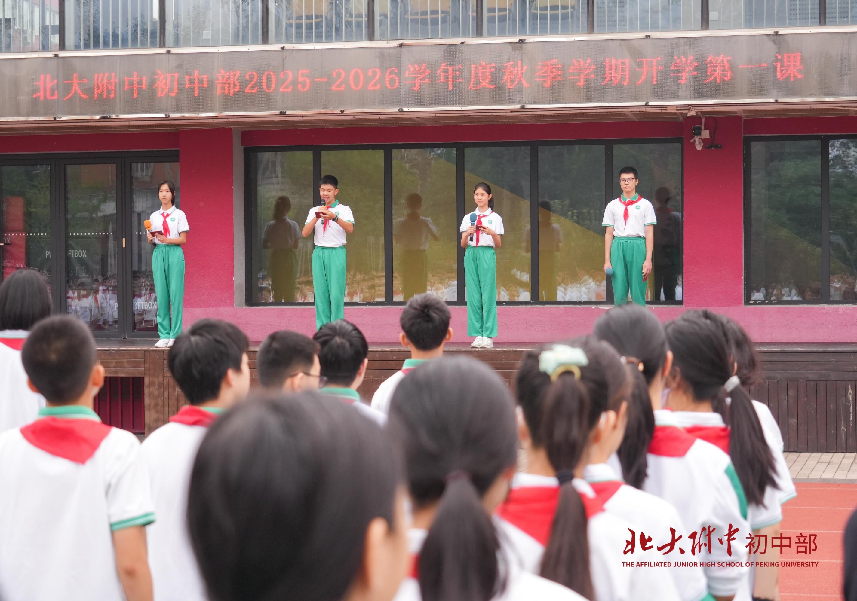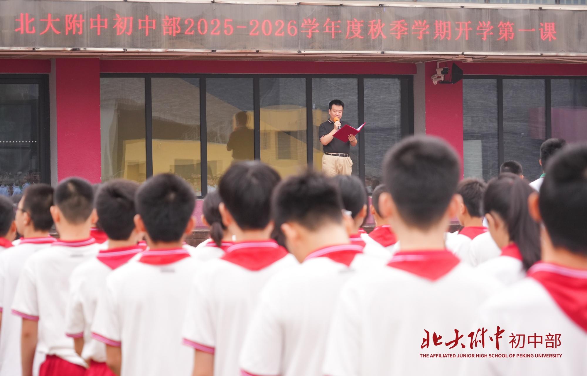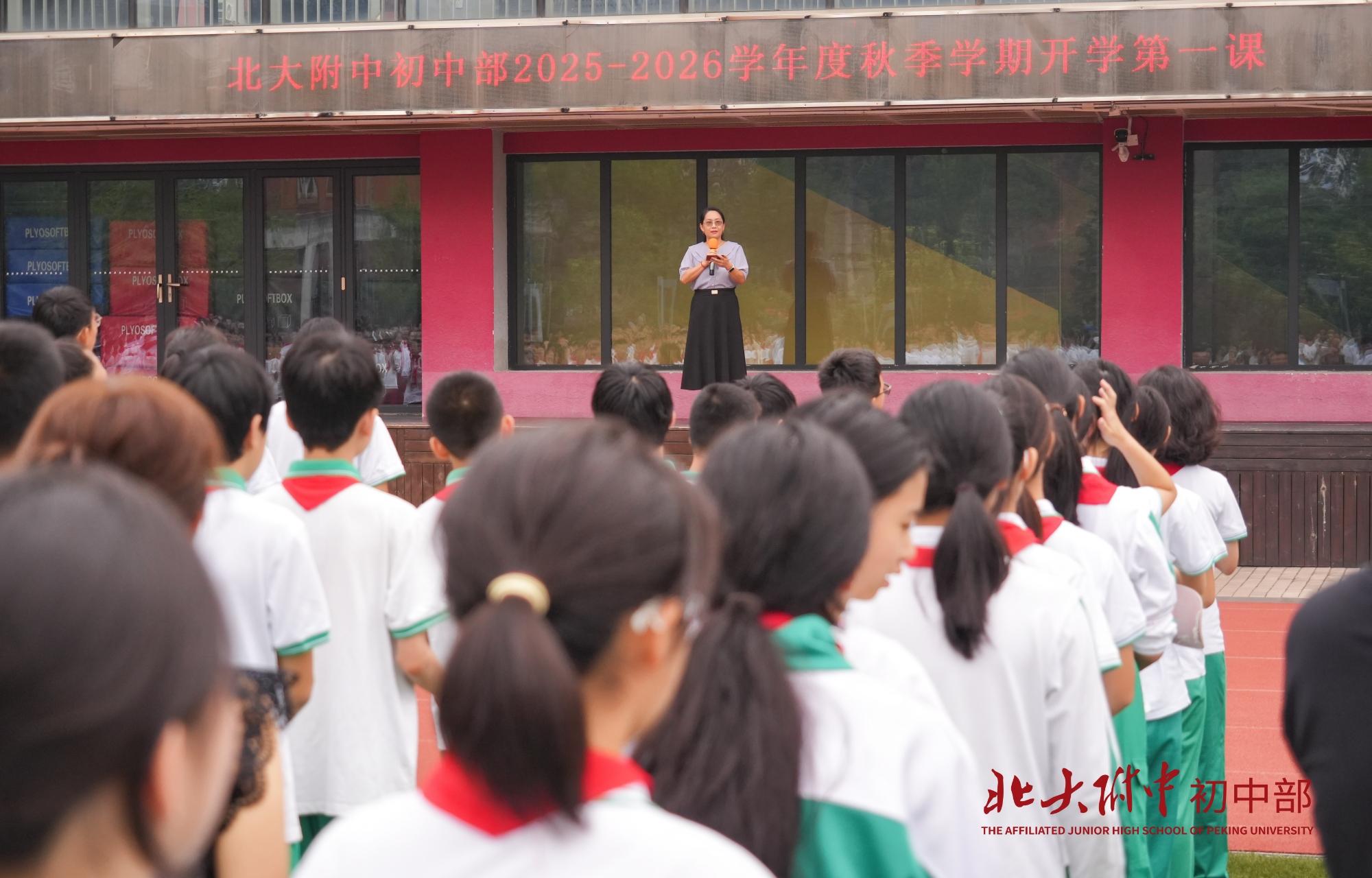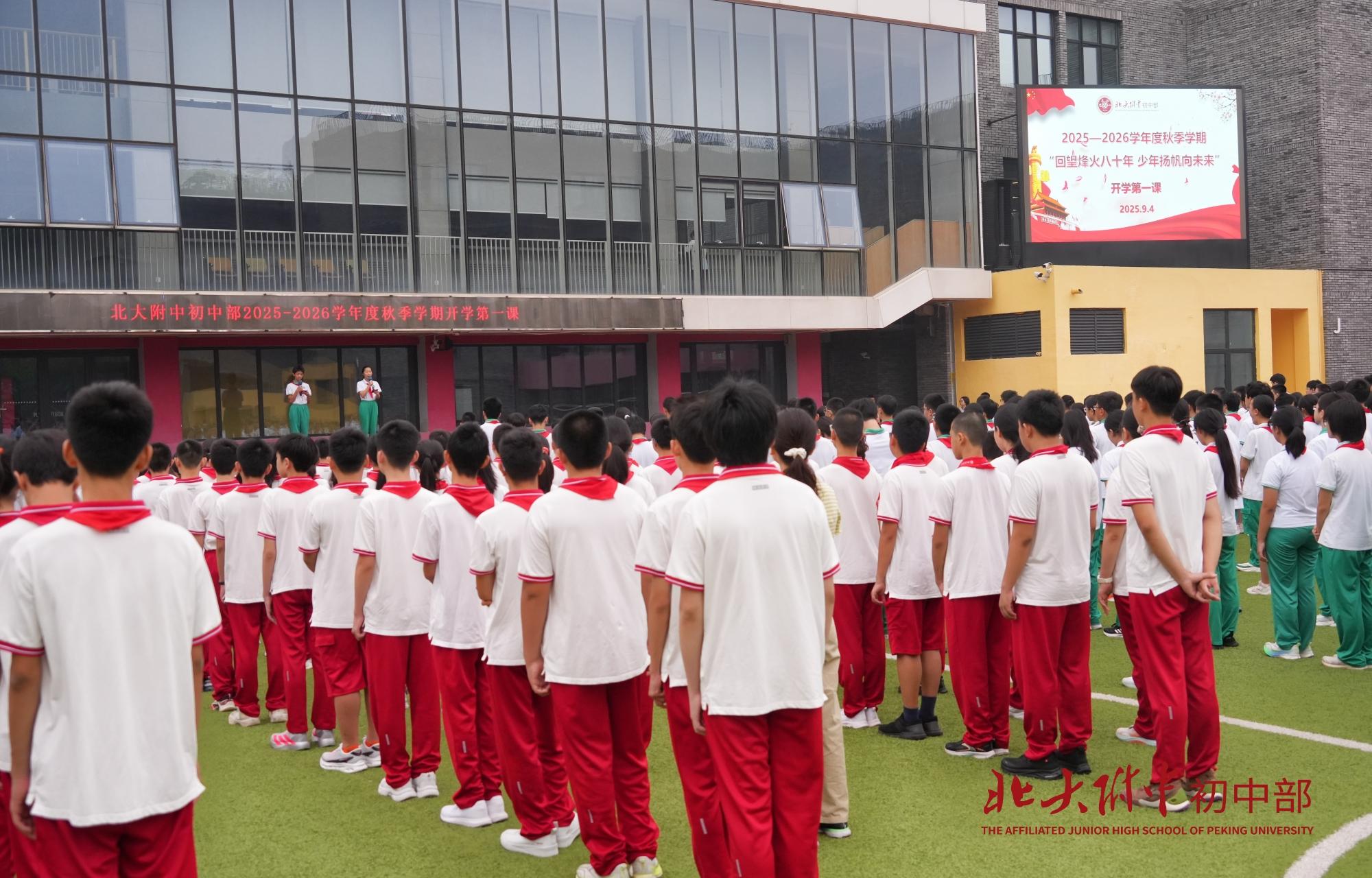 2025年9月4日上午8时,北大附中2025-2026学年度秋季学期“回望烽火八十年 少年扬帆向未来”开学第一课在畅春园校区操场举行。