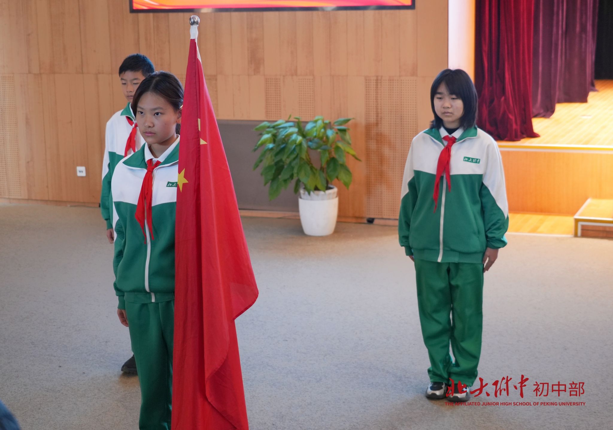 升旗手怀雨凝同学,她担任班级纪律委员,曾获海淀区级优秀学生干部称号。科技节上,她带领小组获“最佳人气奖”。她也是学校健美操队主力,在北京市啦啦操比赛中获得一等奖,为校争光。