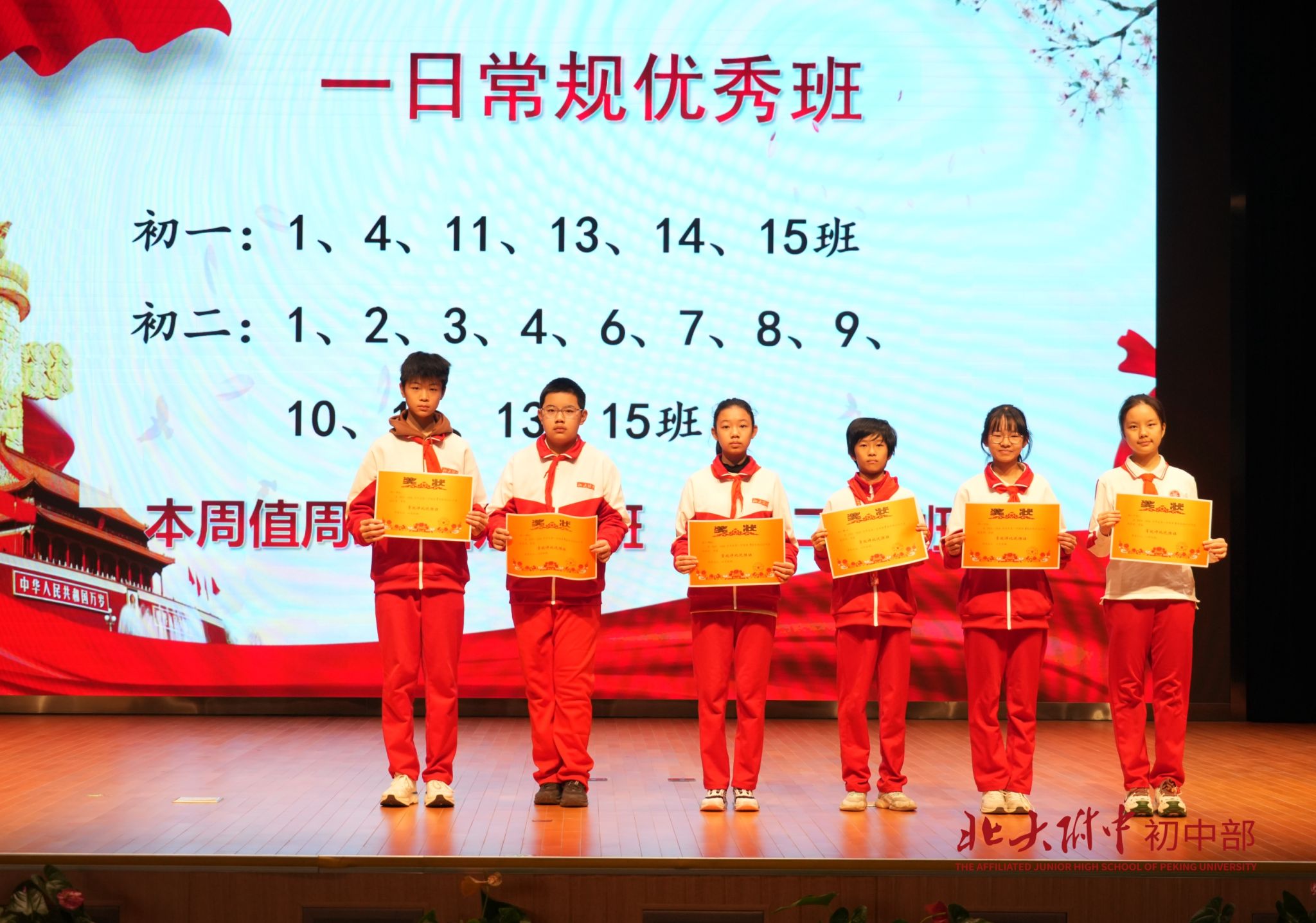 担任本周升旗仪式的班级是初二10班。初二10中队,心中有梦、眼中有光、笃志前行、未来可期。初二10班的同学们活力四射,善于表达,学习勤奋严谨。曾在诗文朗诵会、科技节等活动中展露风采。曾荣获:校级“综合优胜先进班集体”、班级文化建设“综合优胜奖”、冬季锻炼“二等奖”、乐在畅春“三等奖”、多次“常规评比优胜班”等奖项。