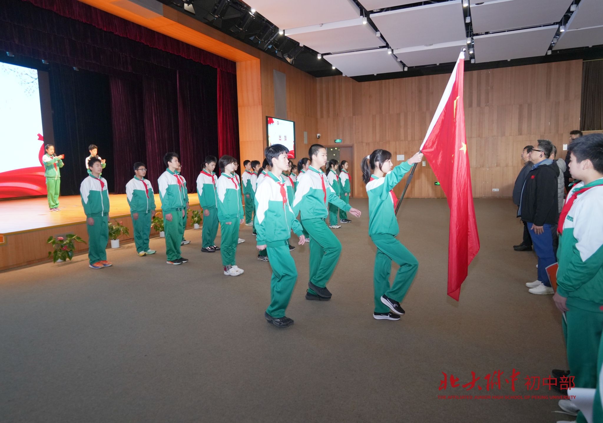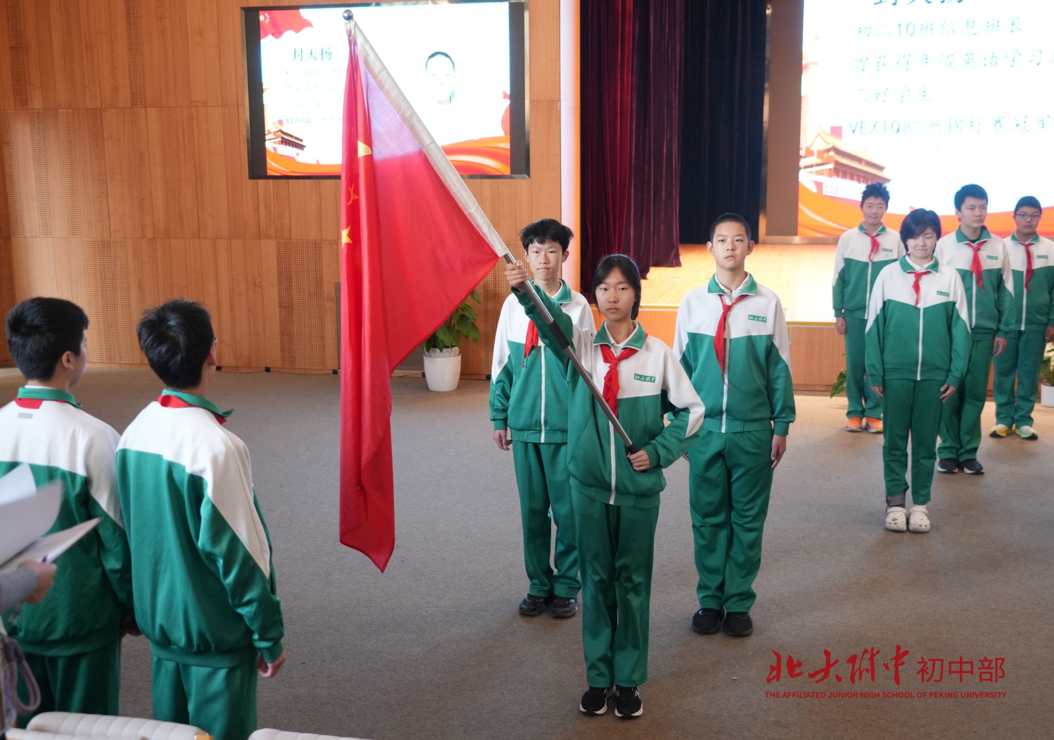 护旗手封天扬同学,他在班里担任信息班长,曾获得年级英语学习之星和三好学生,获得VEXIQ欧洲锦标赛冠军。